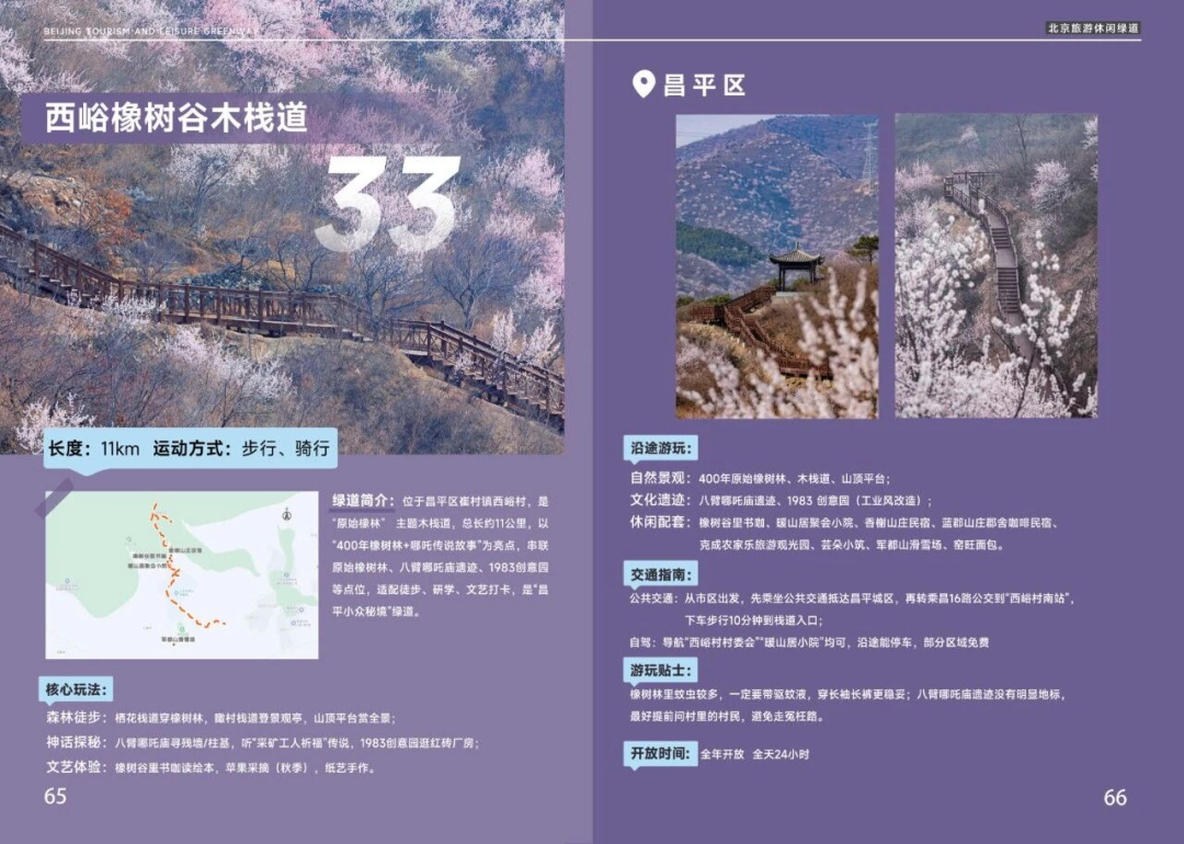 北京市文旅局首批52条旅游休闲绿道评选结果近日出炉,昌平区共有四条绿道成功入选,分别为延寿径步道“望湖段”、溜石港观光木栈道、西峪橡树谷木栈道与白浮泉公园绿道。四条绿道各有特色,兼具生态景观、休闲体验与文化内涵,成为昌平区文旅融合发展的又一亮眼名片,也为市民休闲出游增添了全新选择。