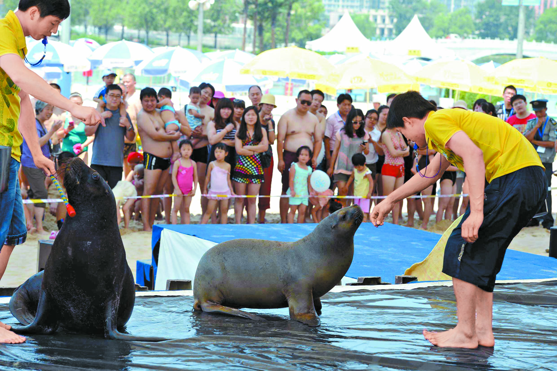 为承办2008年北京奥运会,朝阳公园内建设了奥运会沙滩排球比赛场馆,比赛所用沙子全部从海南运来。奥运会后,沙滩排球场1.7万吨“奥运沙”铺成超大面积沙滩,旁边还修建了5000平方米湖景泳池,市民不出城区就可尽享海边乐趣。(2011年6月20日《北京日报》5版,《“奥运沙”铺成最大沙滩浴场》)此时的朝阳公园,已从郊野公园变为服务城市核心区的大型多功能公园。
