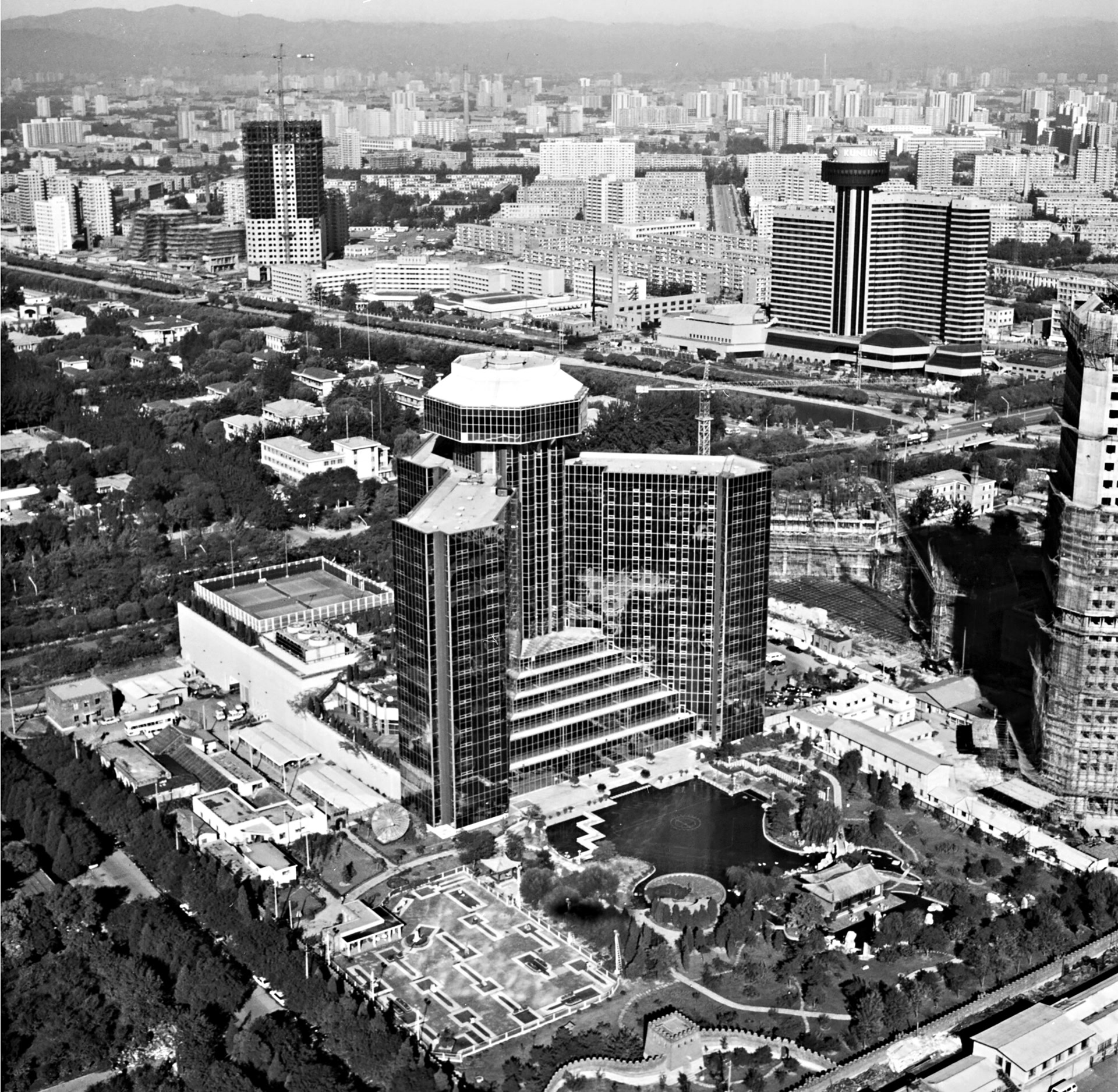 两年之后,毗邻长城饭店,我国第一家自己设计、建造并管理的大型合资饭店——北京昆仑饭店开始试营业。紧接着,为迎接1990年北京亚运会的到来,华都饭店、渔阳饭店、亮马河大厦等一批涉外旅游饭店纷纷落户亮马河畔,给这一地区注入了强大的经济活力。
