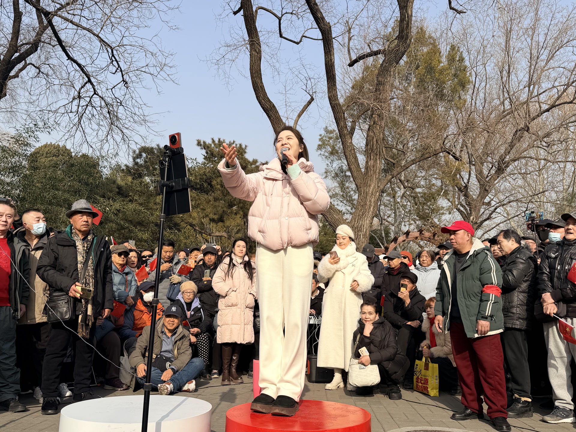 1月15日,悠扬的旋律在紫竹院公园南门的广场上响起,军旅青年歌手胡启越的“红歌万人唱 万人唱红歌”公益演出如约而至。《珊瑚颂》《红梅赞》《走进新时代》等一首首红歌接连唱响,吸引了上千名市民驻足围观。