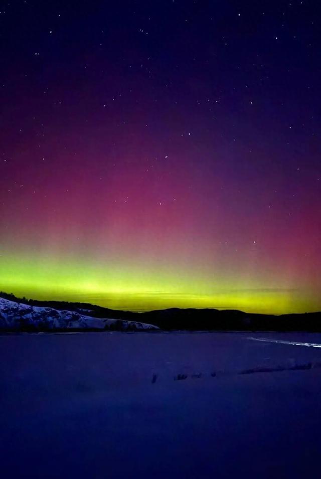 “我是刷到有人去看极光,然后也专门深夜出发去蹲,没想到就拍到了。”刘先生说道,大概是在晚上12点之后,极光开始慢慢出现,是红色的,肉眼看可能没那么明显,用手机长曝光才能拍出来。