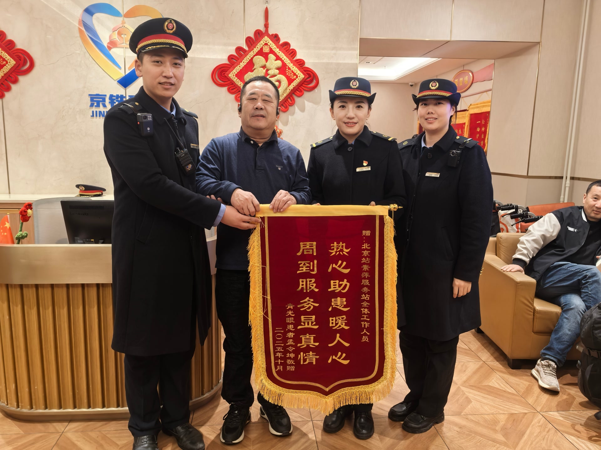 北京站的京铁爱心候车室内,杜京林收到的表扬信和锦旗已经数不清了。每面锦旗背后,都藏着一段美好的旅途故事。“北京站是很多人认识北京的第一扇窗,对每一位远道而来的旅客,我们要耐心听、慢慢讲,多笑笑,让北京站的服务永远有温度。”