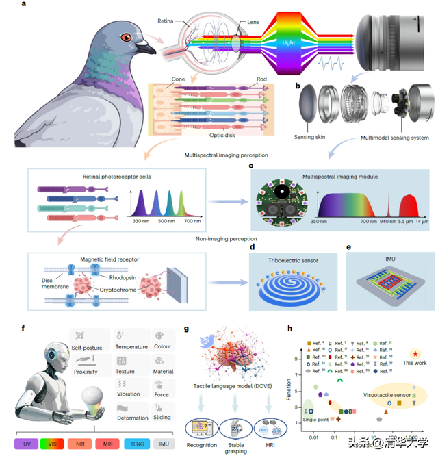 近日,清华大学深圳国际研究生院丁文伯副教授团队联合国内外多家单位,成功研发出一种受鸽眼启发的多模态高分辨率触觉传感器(SuperTac),取得了机器人触觉感知能力的重要进展(图2)。