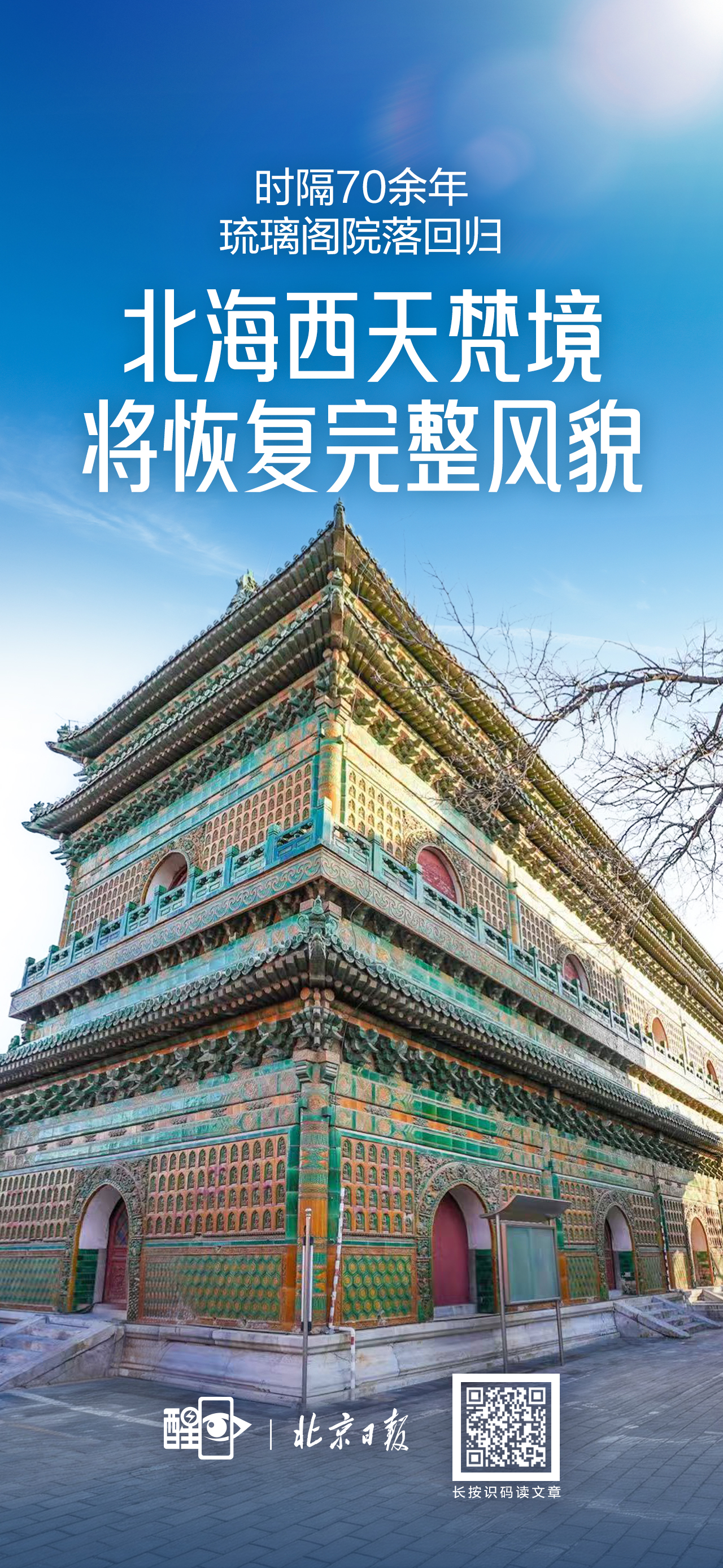 1月22日,市文物局与市园林绿化局、市公园管理中心举办北海公园琉璃阁院落腾退移交仪式。时隔70余年,琉璃阁院落回归,有着400多年历史的北海“西天梵境”将恢复完整风貌。