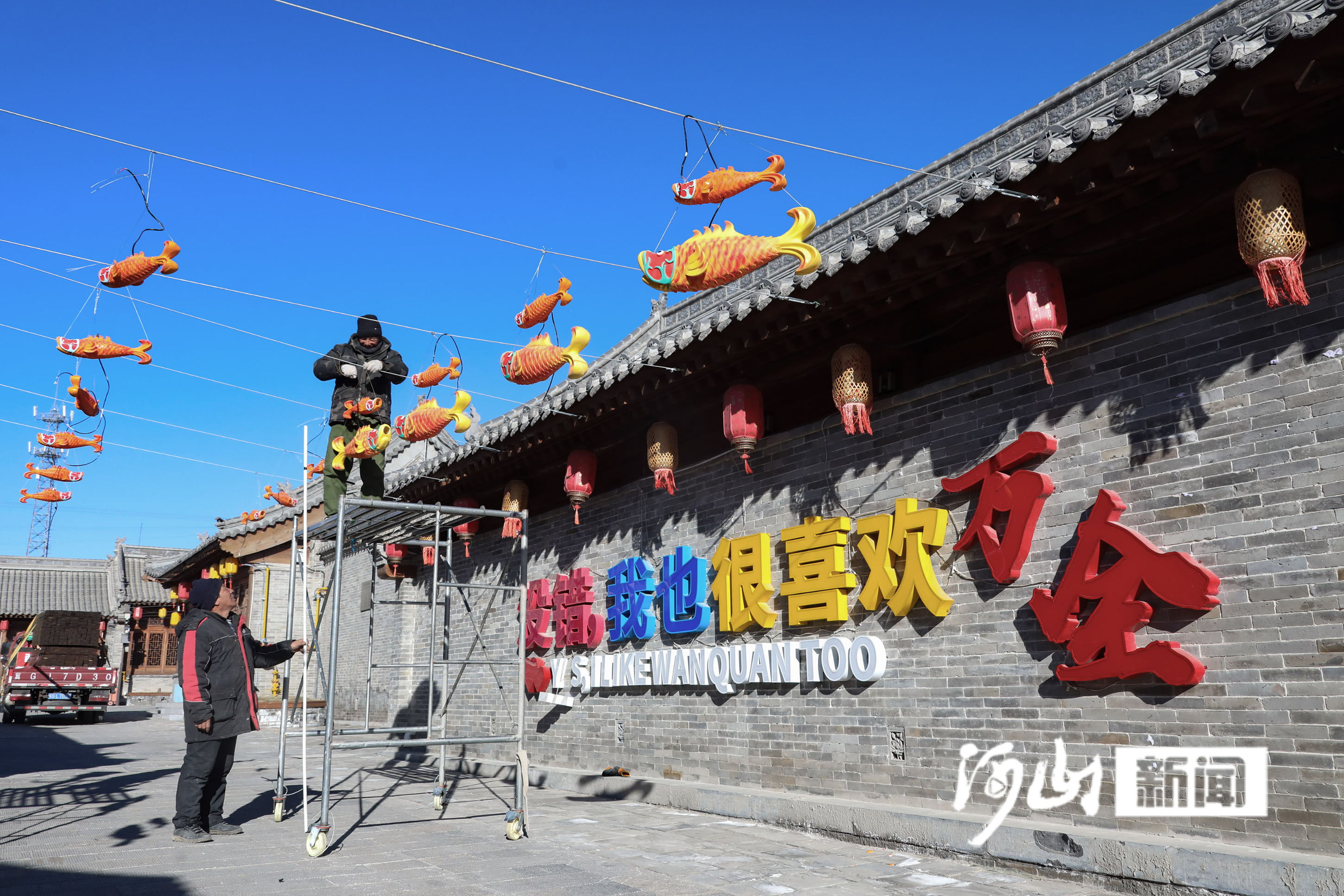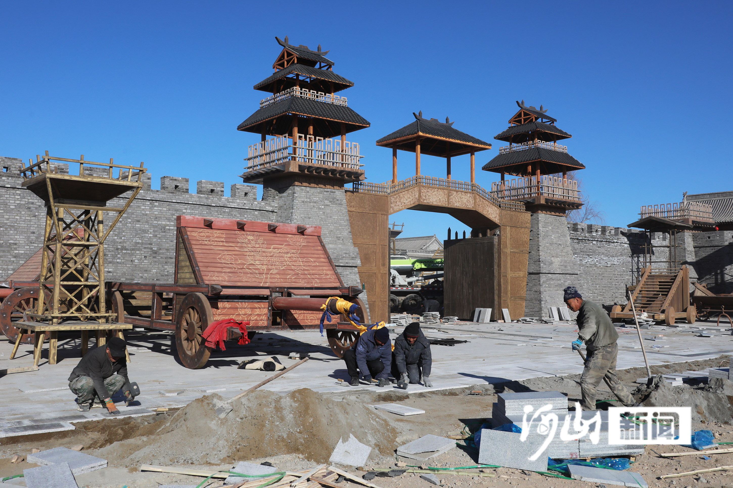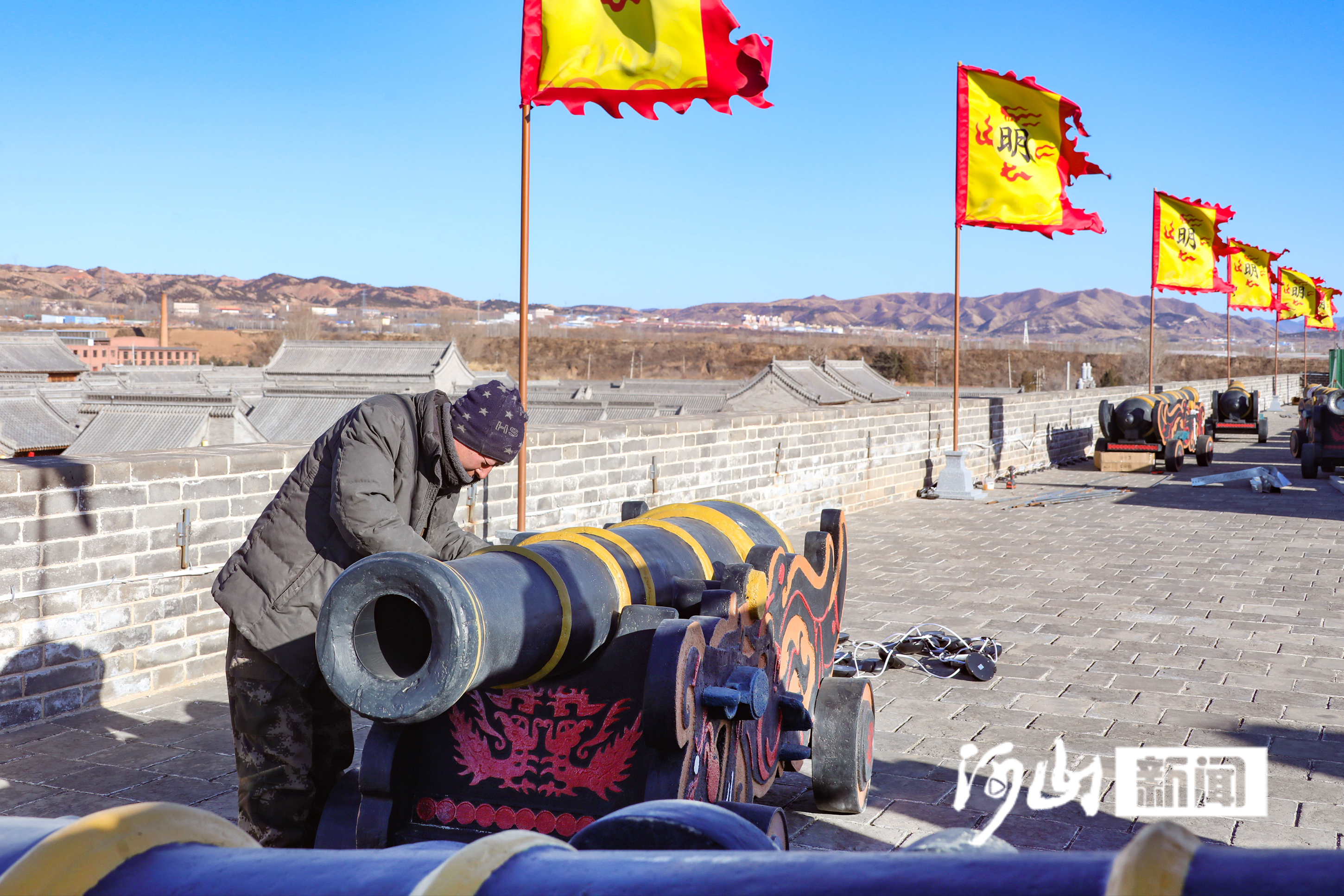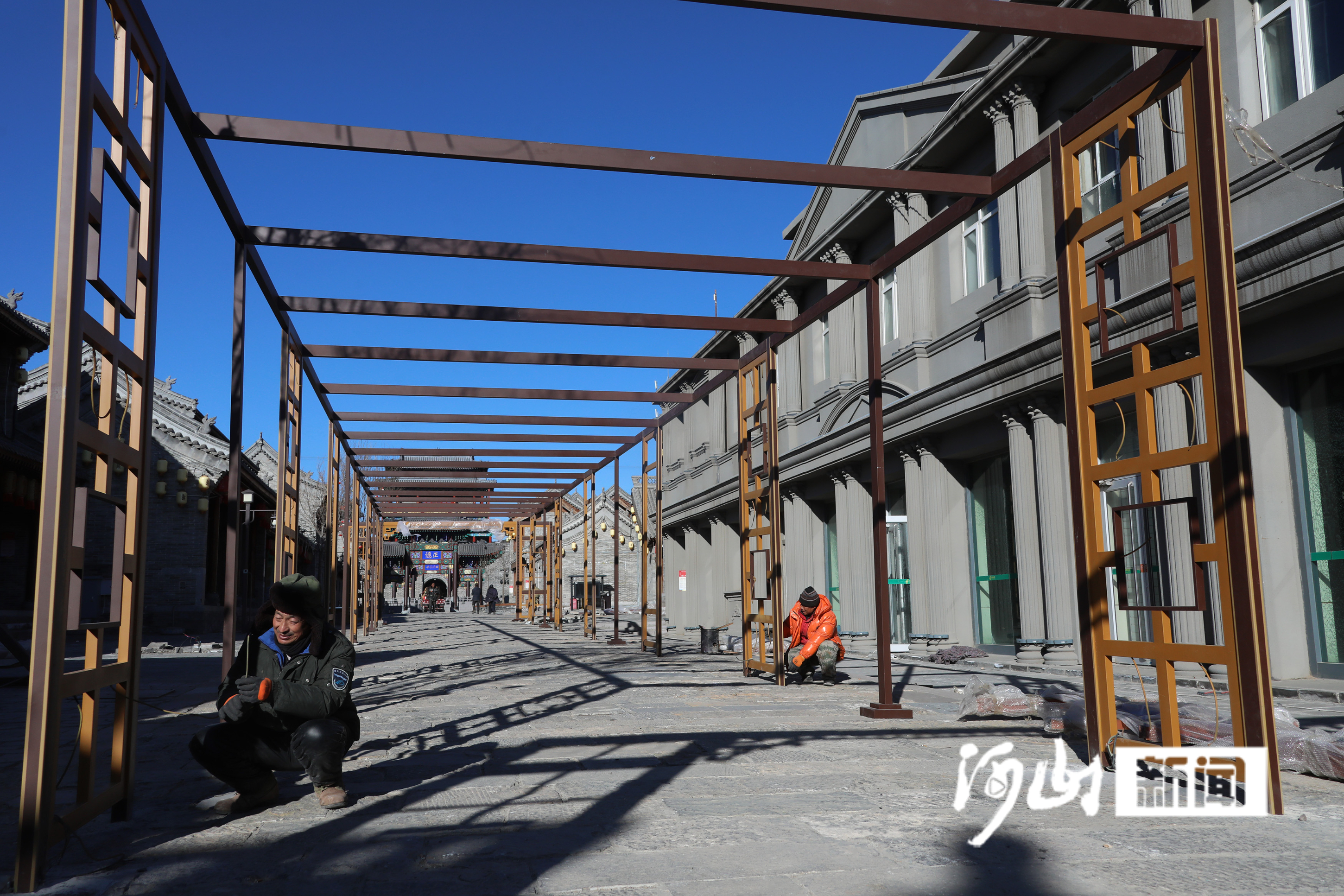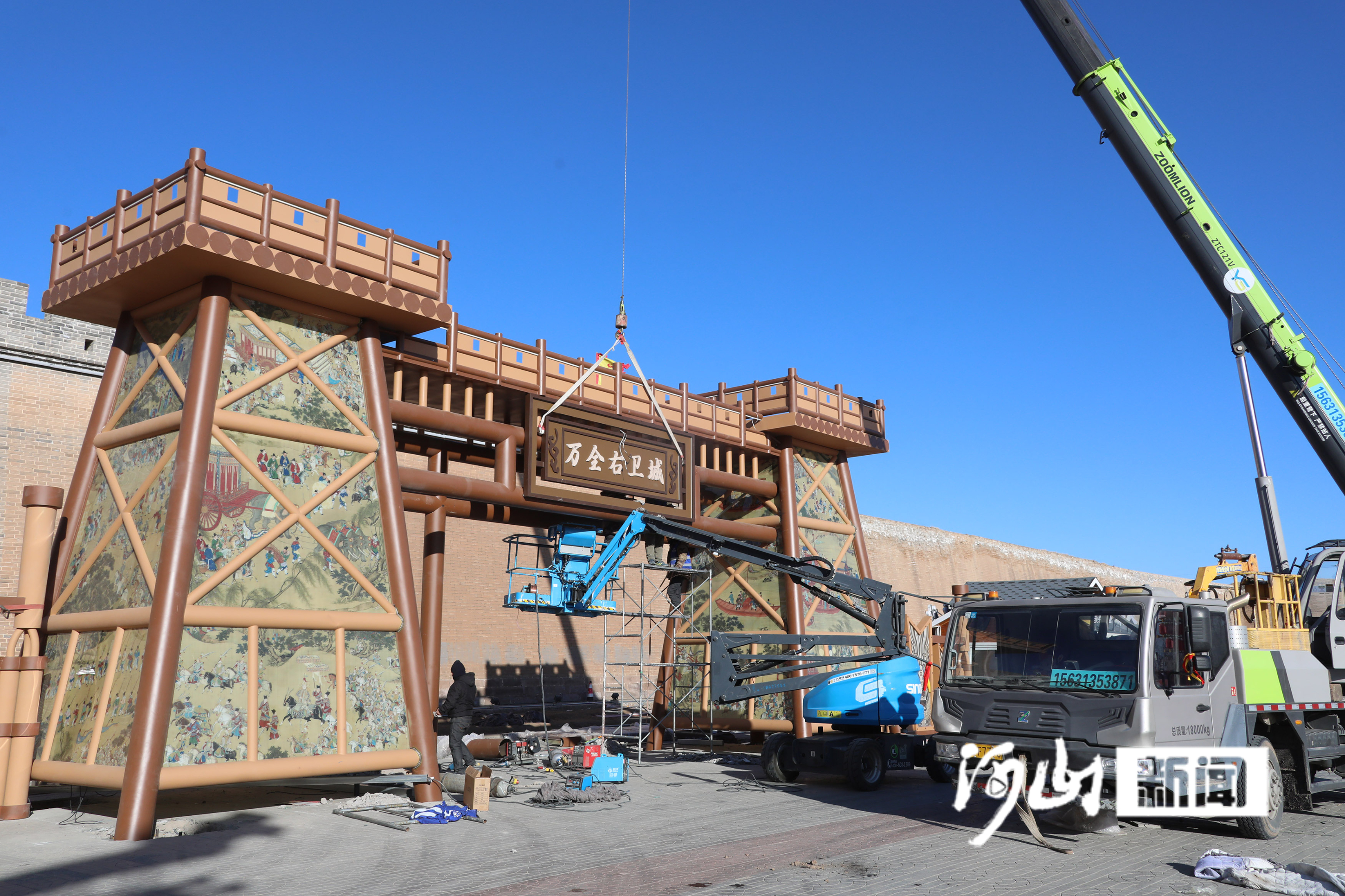 1月21日,万全右卫城入口瓮城处彩旗猎猎,雕塑骏马身姿昂扬。城内,工人们正紧张忙碌地推进景区升级改造工程,亮化美化、新场景搭建、路面铺砖等各项施工有序开展;演员们也在加紧排练节目,为开街做着充分准备。