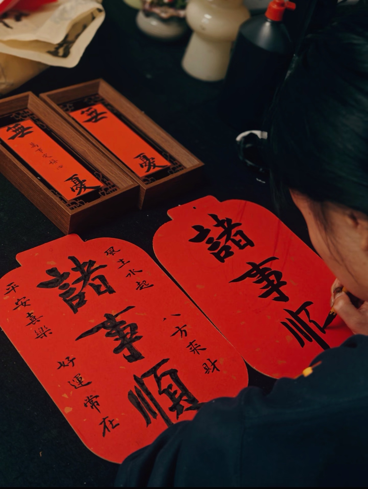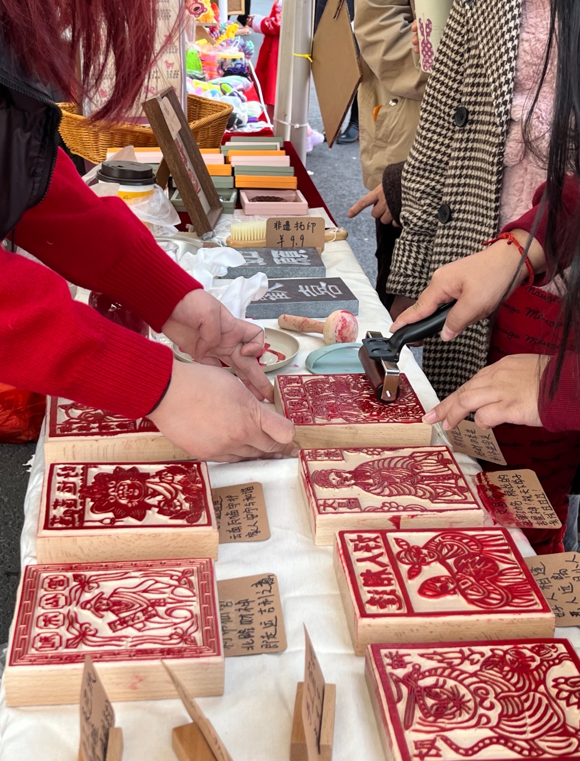年货节深度融合传统年俗文化,设置写春联、剪纸、糖画、竹编等非遗体验区,吸引众多家庭参与。书法爱好者则现场挥毫,为居民送上手写春联与祝福。