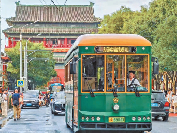 其中,以串联起奥林匹克公园、鼓楼、永定门等中轴线上重要遗址景观的82路、5路、2路等为重点,打造“守望中轴”文化线,传承历史文脉,助力北京中轴申遗;以穿行于古都文化遗址、京味文化浓郁的鼓楼老街景的107路、纵贯京城南北的141路、与共和国同龄的23路、宣传大运河文化的T116路等为重点,打造“古都记忆”京味线,彰显首都风貌、感受古都风韵。北京公交集团打造的大美中轴观光巴士线路,开通一年多来累计服务各方游客近10万人次,吸引近千名外宾打卡。