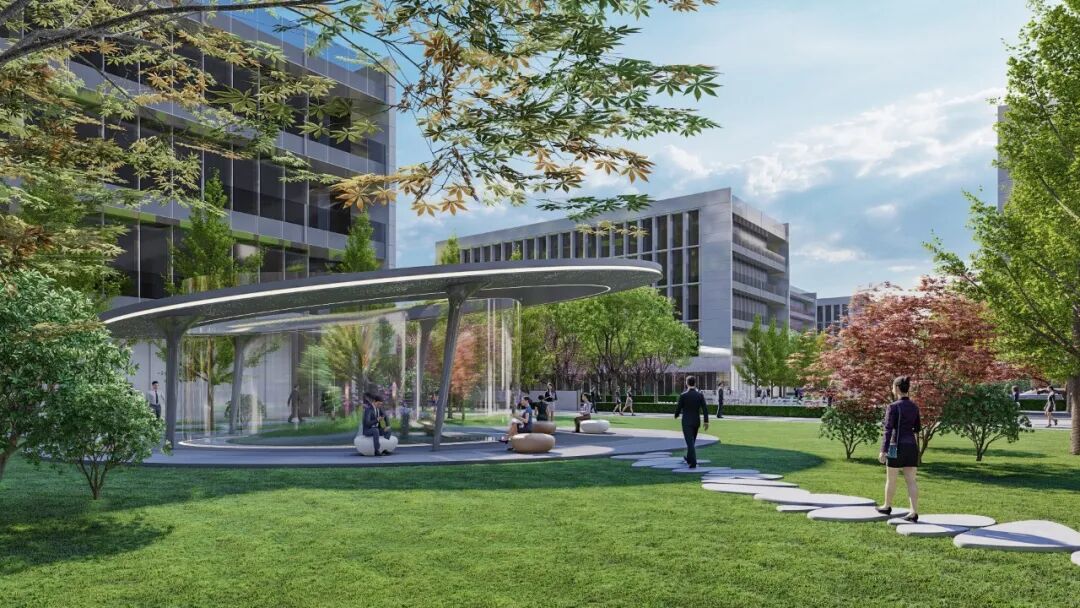 作为北京市“3个100”重点工程,永丰·芯域以绿色低密为特色,采用花园式办公设计,项目容积率仅1.3-1.5,是城市级产业园区里难得的低密度产品。园区建筑采用“H”型布局,单栋体量约0.9-1.1万平方米,结构设计可分可合,可满足不同规模、不同体量的产业办公需求。