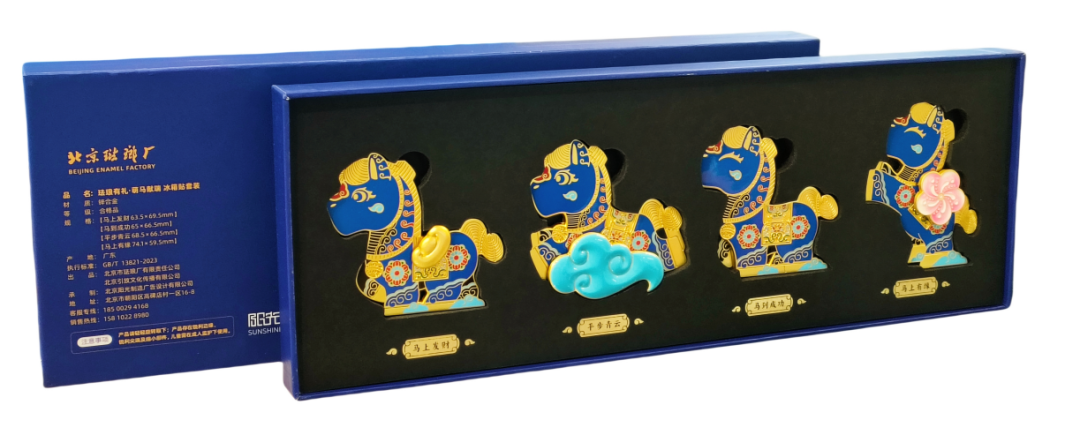 作为燕京八绝之一的景泰蓝,这次玩出了新花样!“珐琅有礼·萌马献瑞”冰箱贴系列,把千年釉彩与缠枝纹饰,融进四只Q萌小马的造型里。