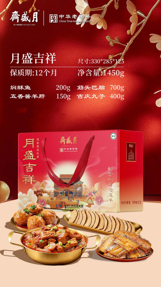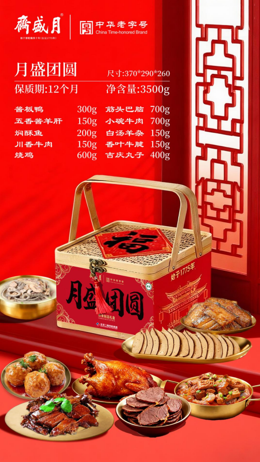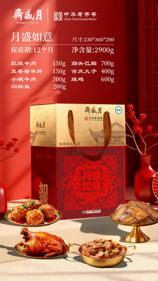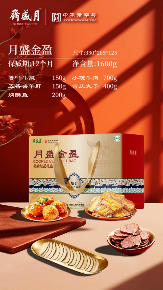 250年宫廷御膳传承的月盛斋,凭国家级非遗工艺圈粉无数。老汤酱卤的牛羊肉,酱香透骨,肉质酥烂,年夜饭桌上摆上一盘,瞬间勾起全家人的馋虫。月盛礼盒装大气体面,走亲访友送它,诚意满满。