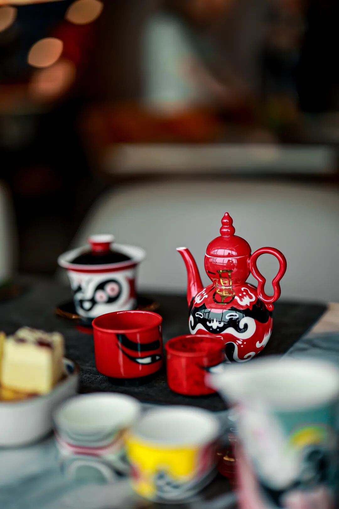 把京剧脸谱的艺术精髓,凝在茶杯之上。眉眼、额纹等程式化特征,经艺术提炼后用釉彩精准勾勒,“辨忠奸、分善恶”的脸谱文化,与茶杯的实用器型完美融合。喝茶时赏玩脸谱纹样,中式美学的韵味,在杯盏之间流转。
