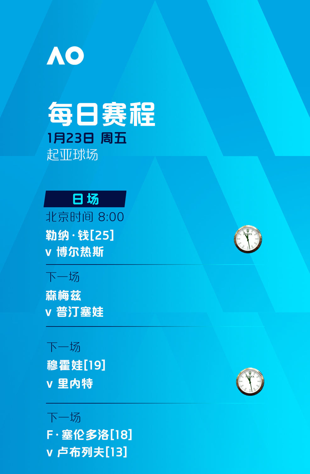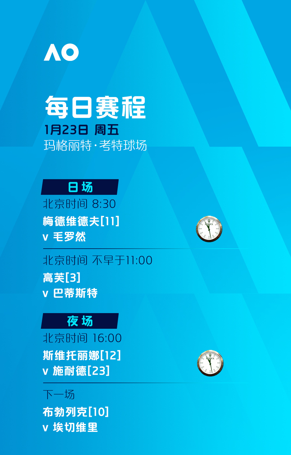 罗德·拉沃尔球场、玛格丽特·考特球场将从北京时间8:30开打,其余球场将从北京时间8:00开打。