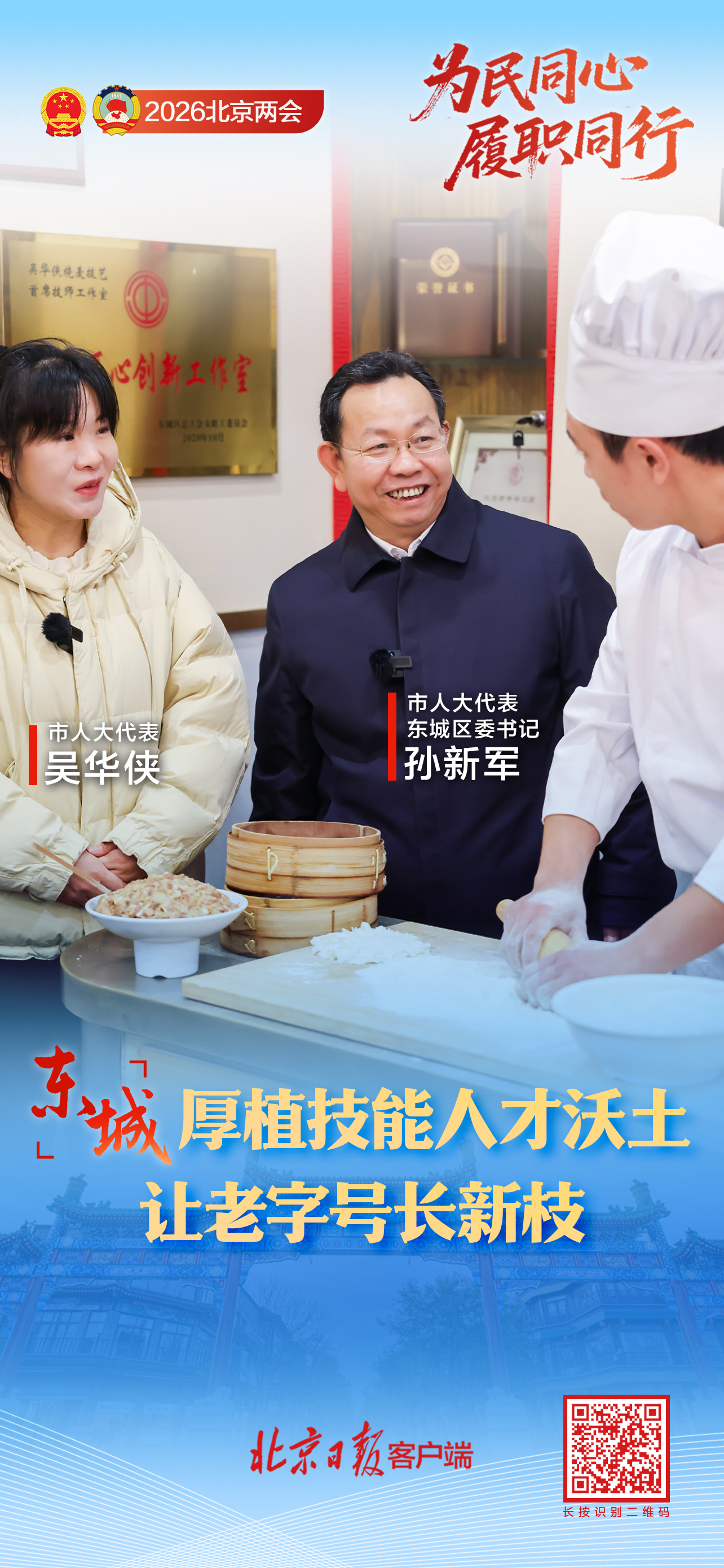 2026年北京市两会前夕,围绕去年市两会上市人大代表吴华侠提出的“推动老字号企业技能人才队伍”建议,东城区委书记孙新军与吴华侠一起,走进吴华侠技能大师工作室、大北朋友宠物摄影首店、临汾会馆非遗美学空间、钟连盛国家级技能工作室,了解老字号人才培养和创新发展等情况。