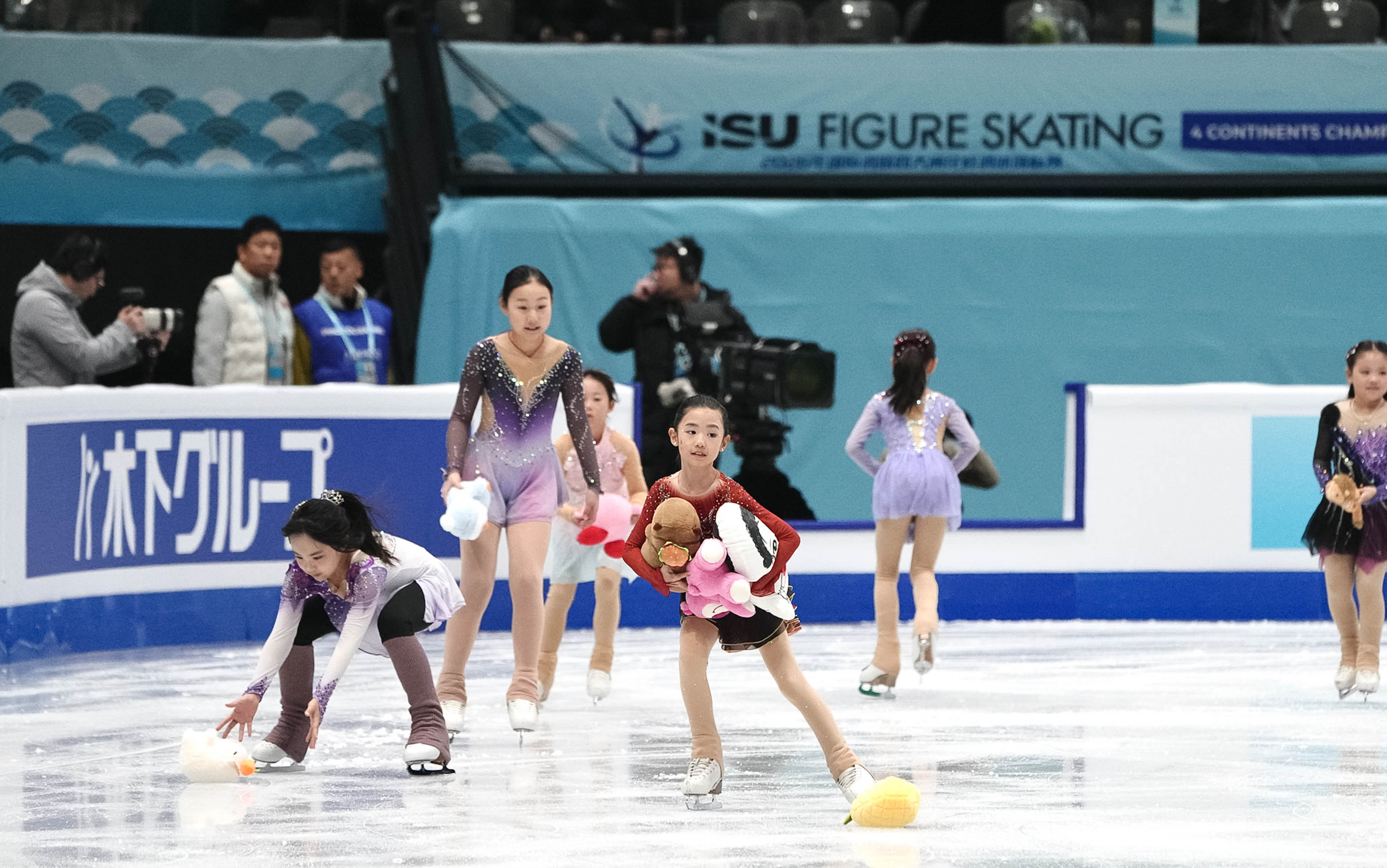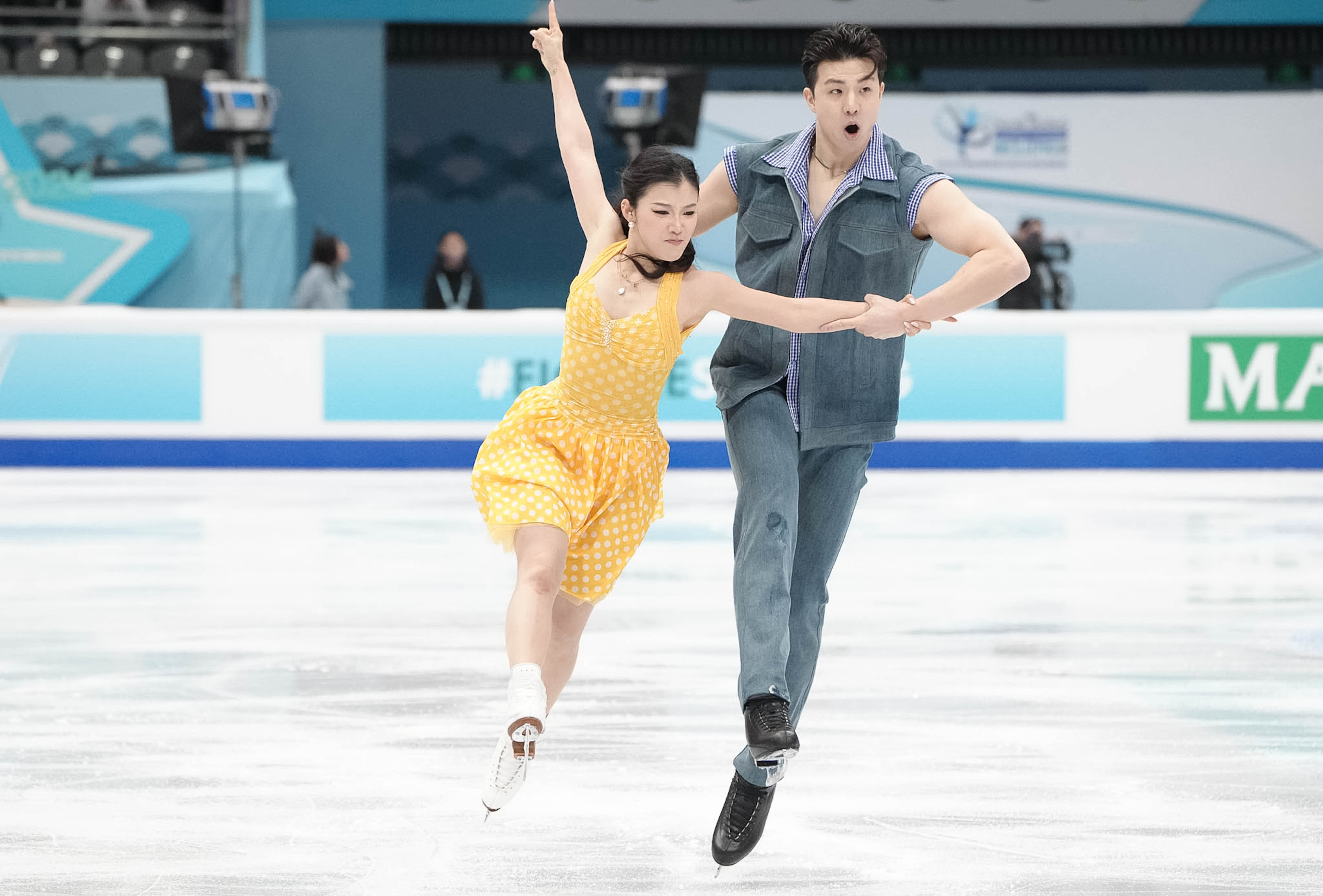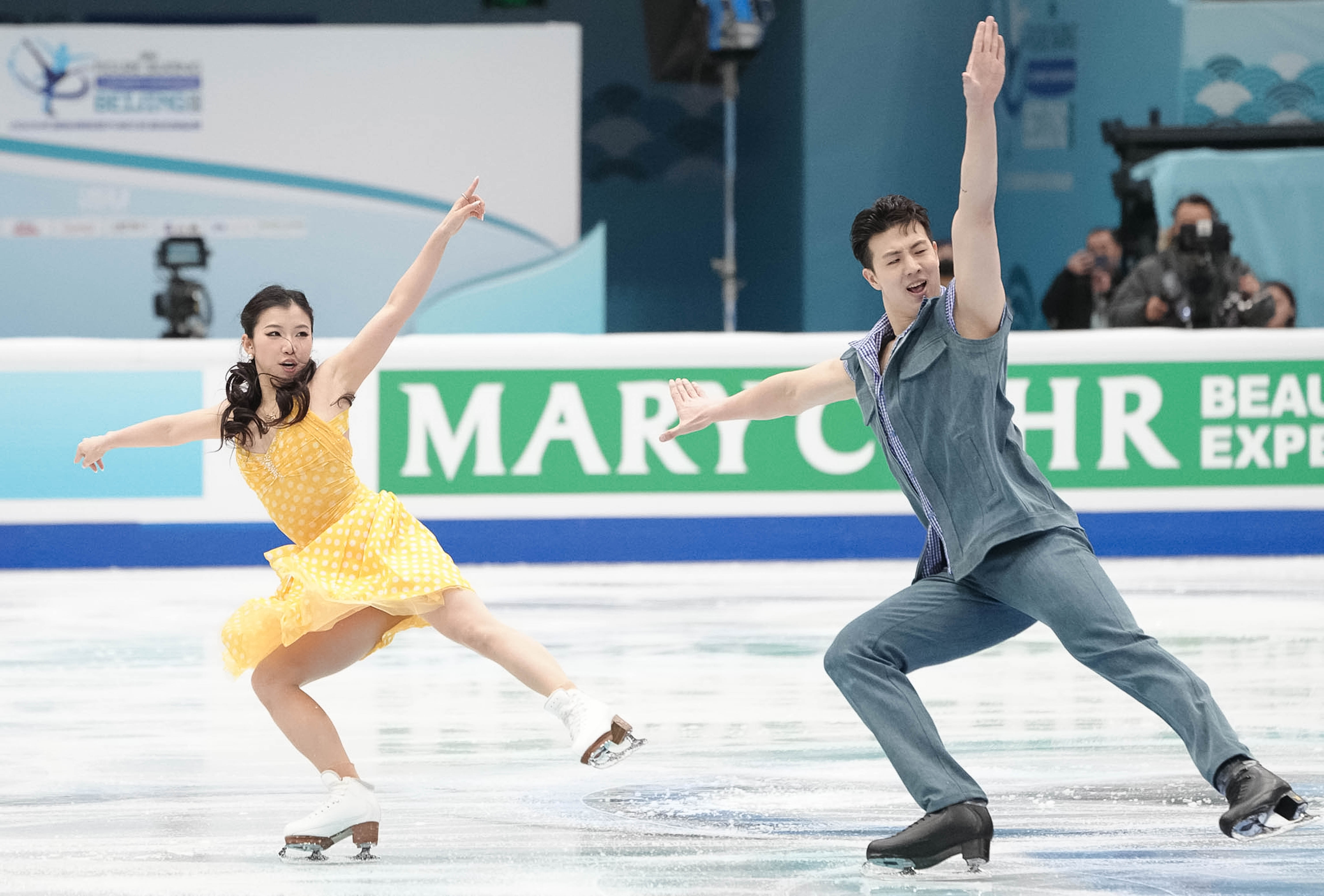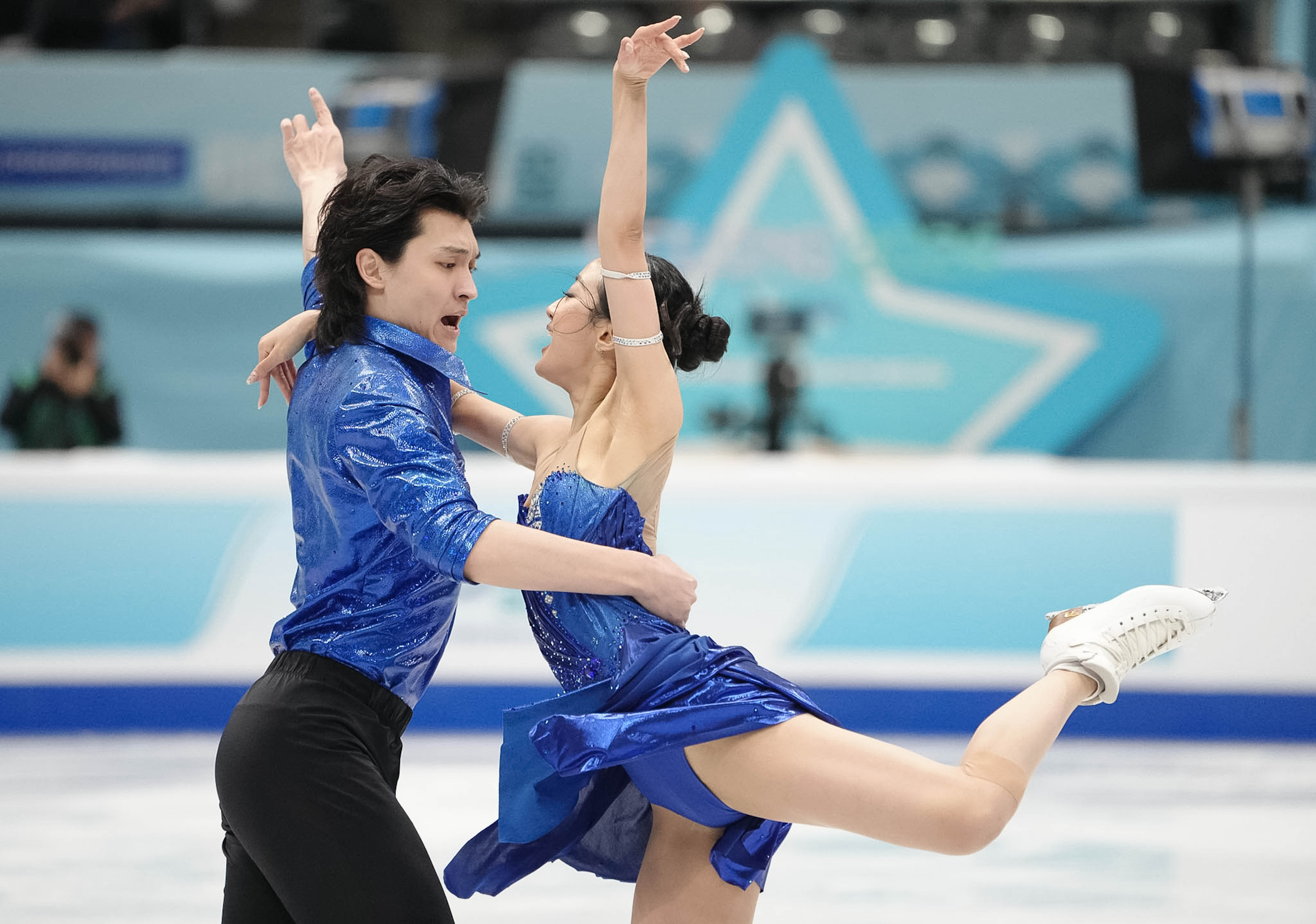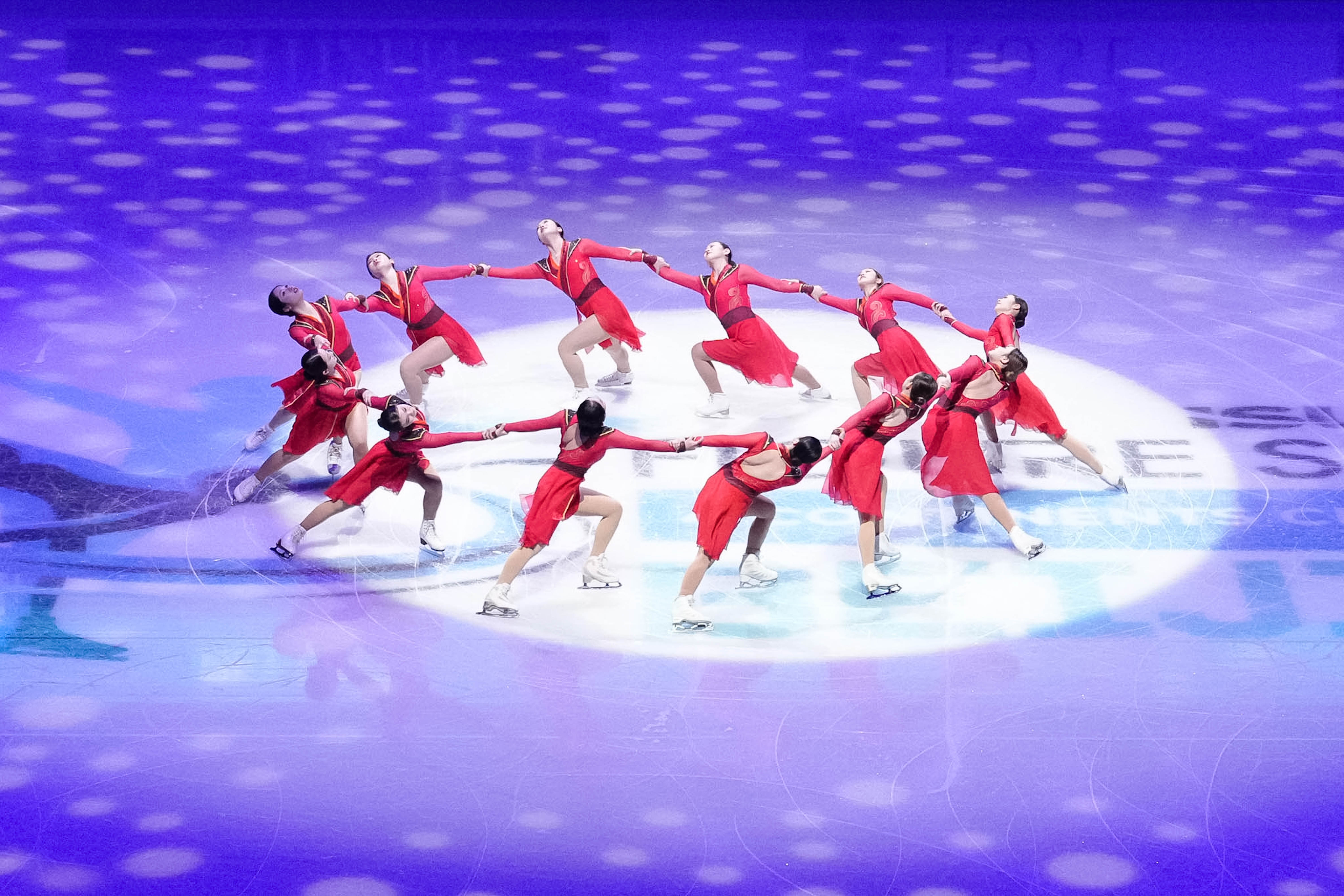 2022年北京冬奥会冠军隋文静/韩聪携手张嘉轩/黄一航参加双人滑比赛。