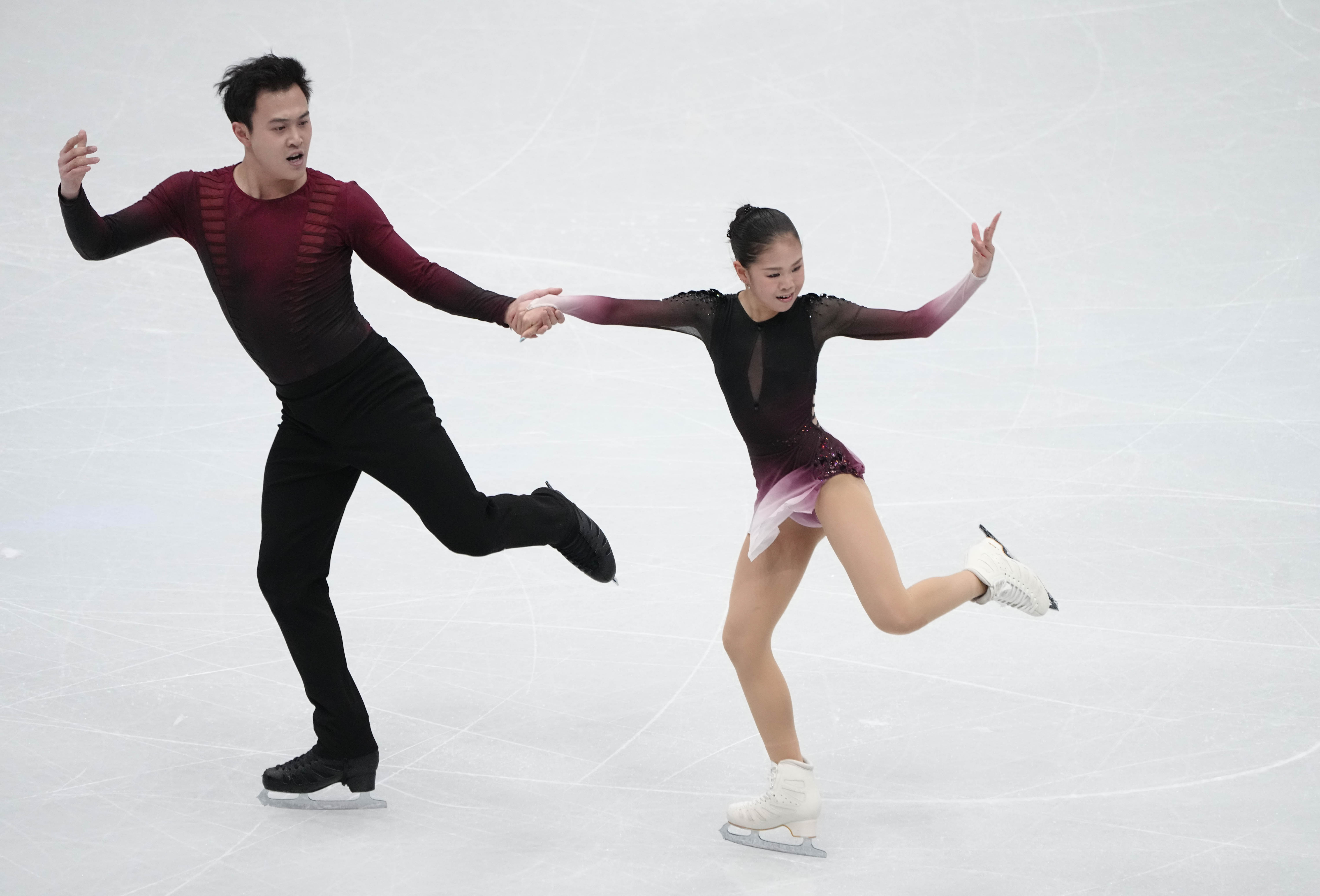 王诗玥/柳鑫宇、任俊霏/邢珈宁、肖紫兮/何凌昊在冰上舞蹈比赛中亮相。