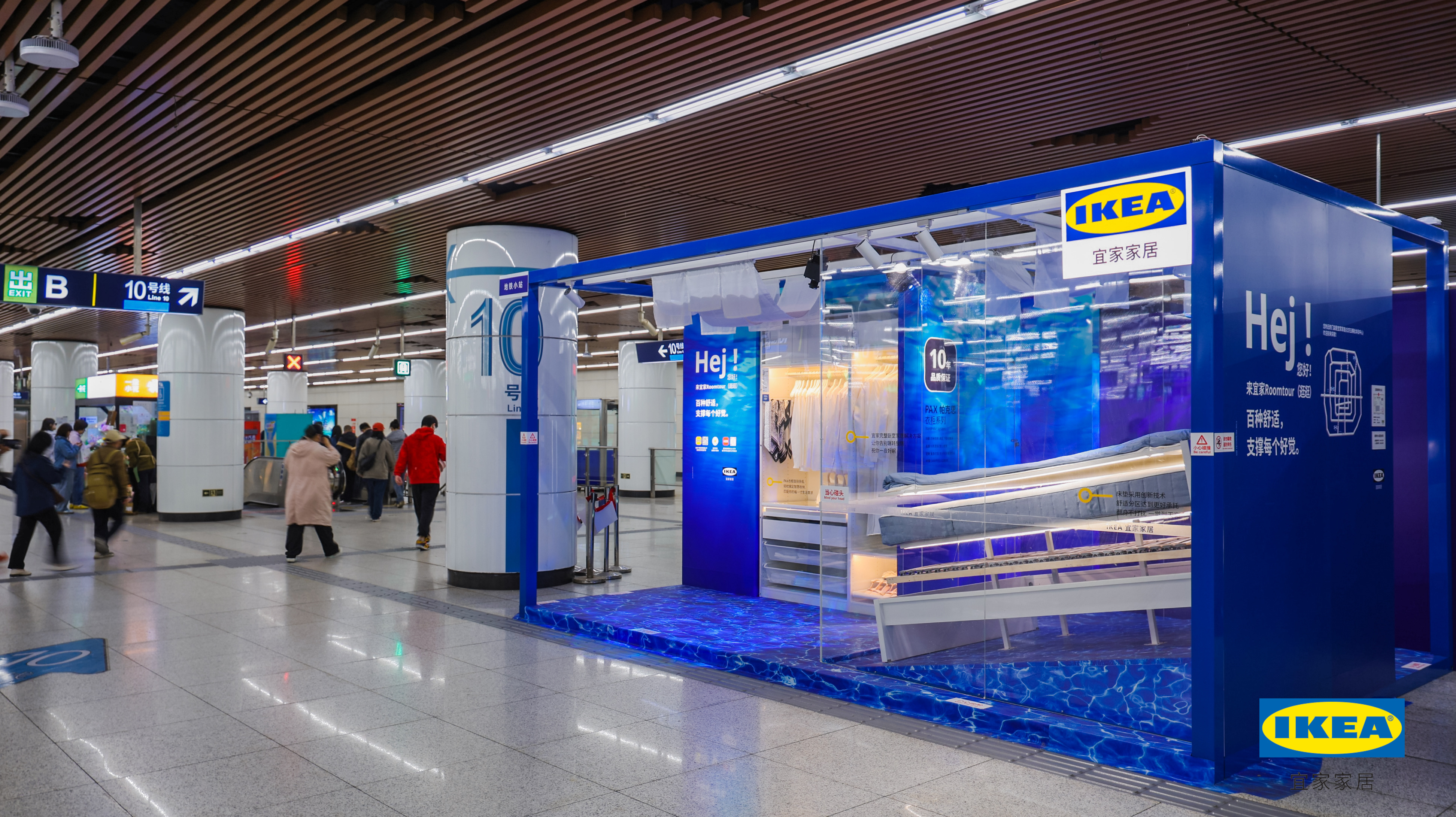 数字化赋能更让服务“破圈”:美团取餐柜实现“即时下单+线上预订”双模式,打通线上线下消费闭环。“宜家生活地铁小站”打造“静态演示+线下自提”消费闭环,线上小程序与线下场景联动,突破了地铁空间的物理边界,将流量优势转化为经济效益。