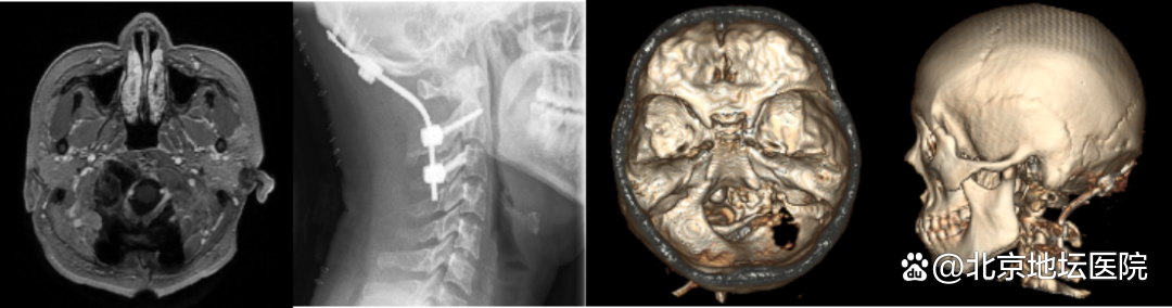 术后第二天,小兰已经可以下地活动和正常进食了,咳嗽反射也表现良好。术后复查头CT、MRI及颈部平片示术区无出血、肿瘤完整切除;枕颈固定装置位置及颈椎曲度均良好。