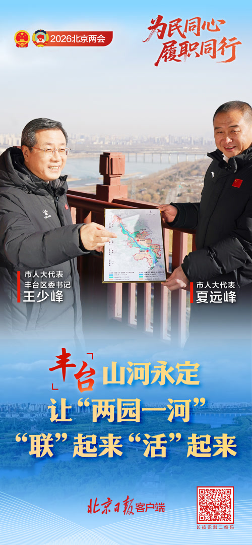 2026年北京市两会前夕,围绕去年两会上市人大代表夏远峰提出的加快推动“两园一河”联动发展的建议,丰台区委书记王少峰邀请夏远峰一起,登上永定塔,远眺园博湖,走进宛平城,谋划如何让自家的资源先“联”起来、“活”起来。