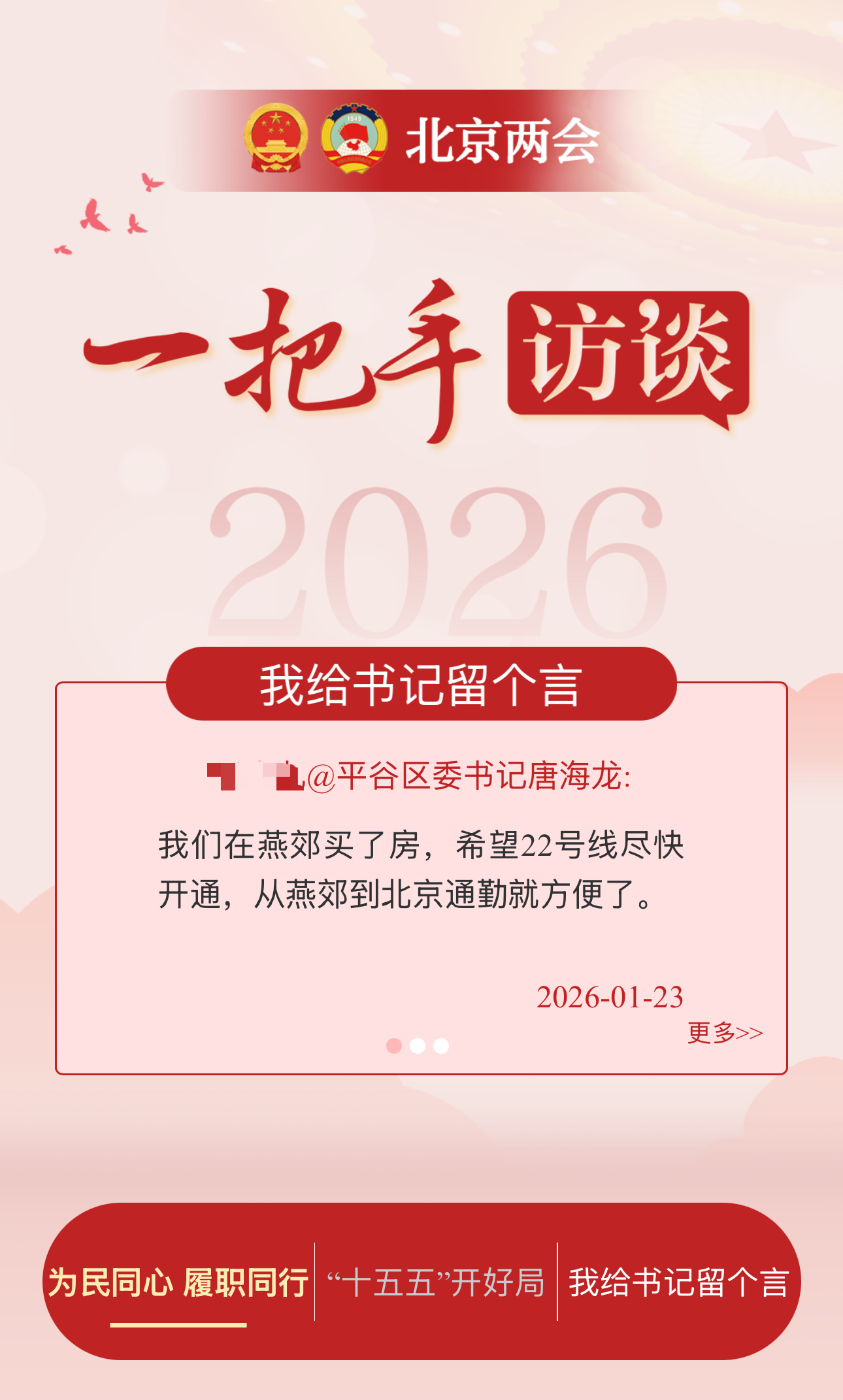北京的未来,由每一位市民擘画。您对首都发展有何愿景?在工作生活中遇到了哪些烦心事?登录北京两会频道,即可畅所欲言。