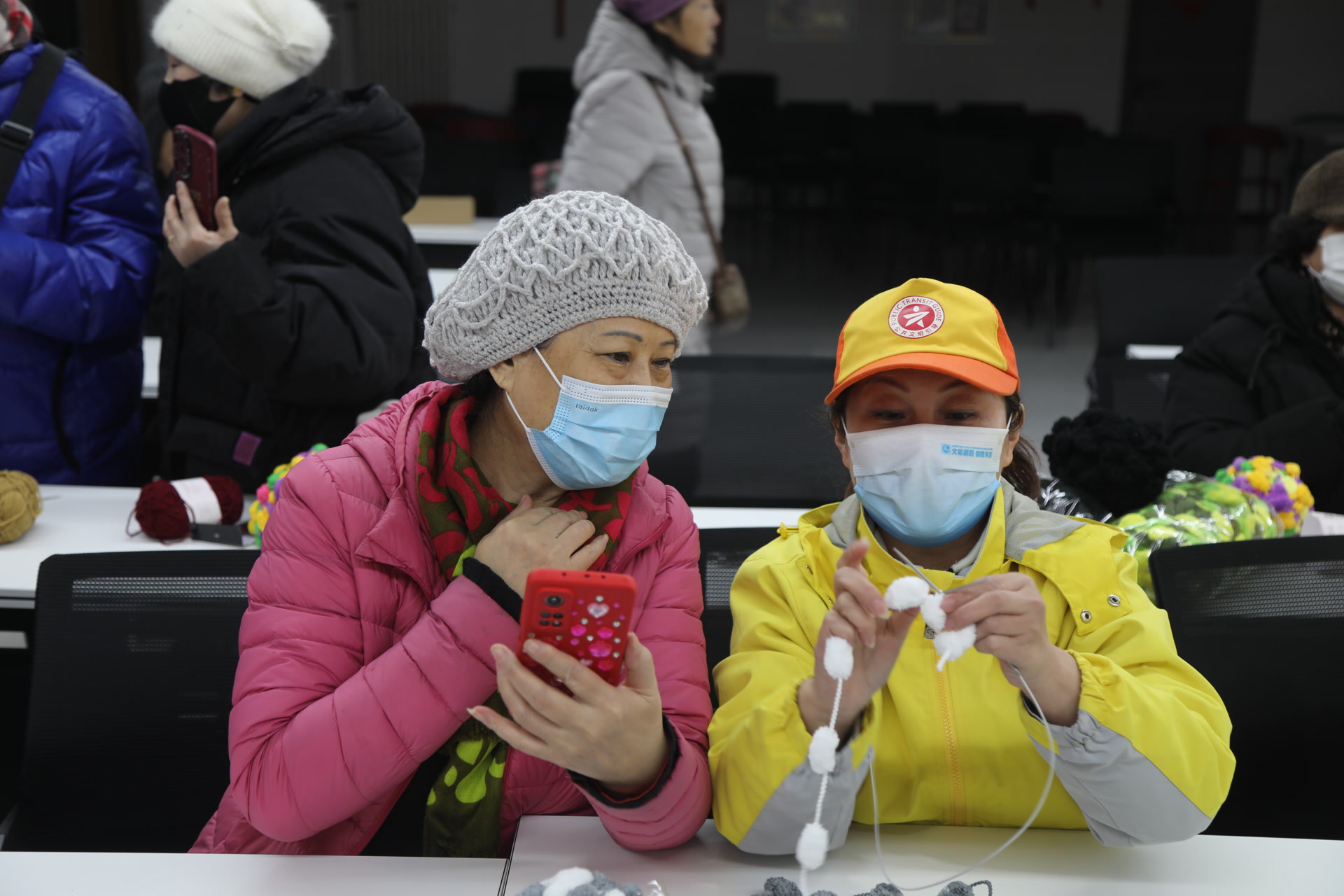 九年来,坐垫从泡沫垫、防水棉垫,升级到如今由文明引导员与芳草地社区阿姨们亲手钩织的厚实毛线垫。