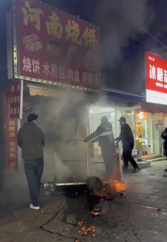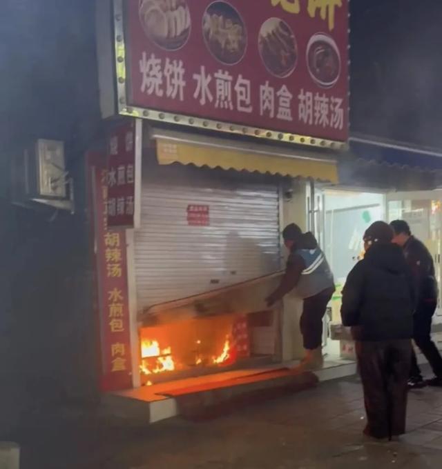 眼见火势有蔓延风险,周边一排紧邻店铺都将受波及,刘金宝没有丝毫迟疑,当即冲上前,把手伸进门缝,徒手向上猛抬滚烫的卷帘门。卷帘门打开的瞬间,浓烟翻涌而出,店内火势已大到让人无法进入。周边两家店铺的老板也赶来帮忙,众人先把堵在店门口的桌子拽出来,又从旁边店铺找来灭火器,将主食店内的火彻底扑灭。从发现火情到成功灭火,全程不到5分钟。消防员赶到现场后,刘金宝和妻子才默默离开了。