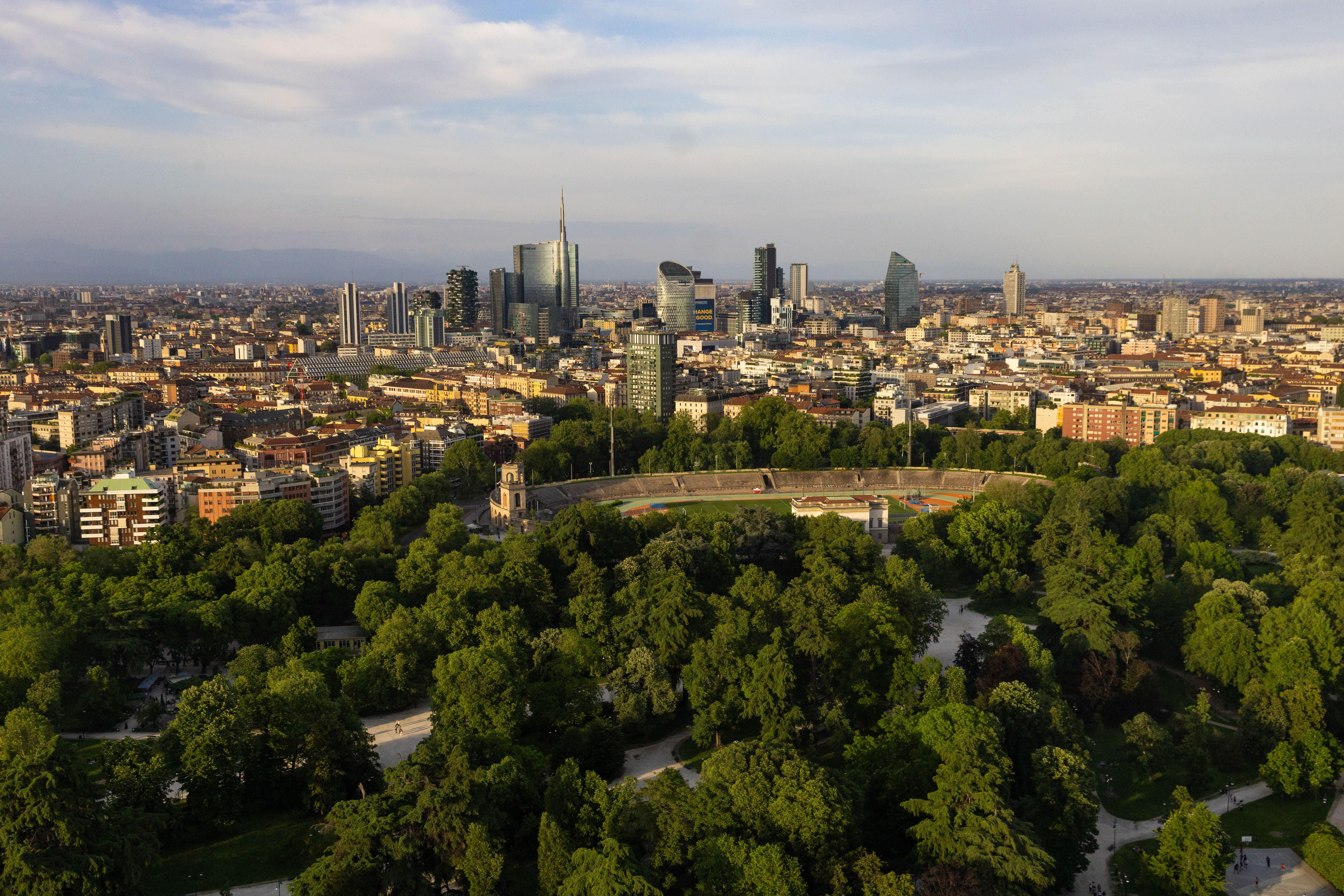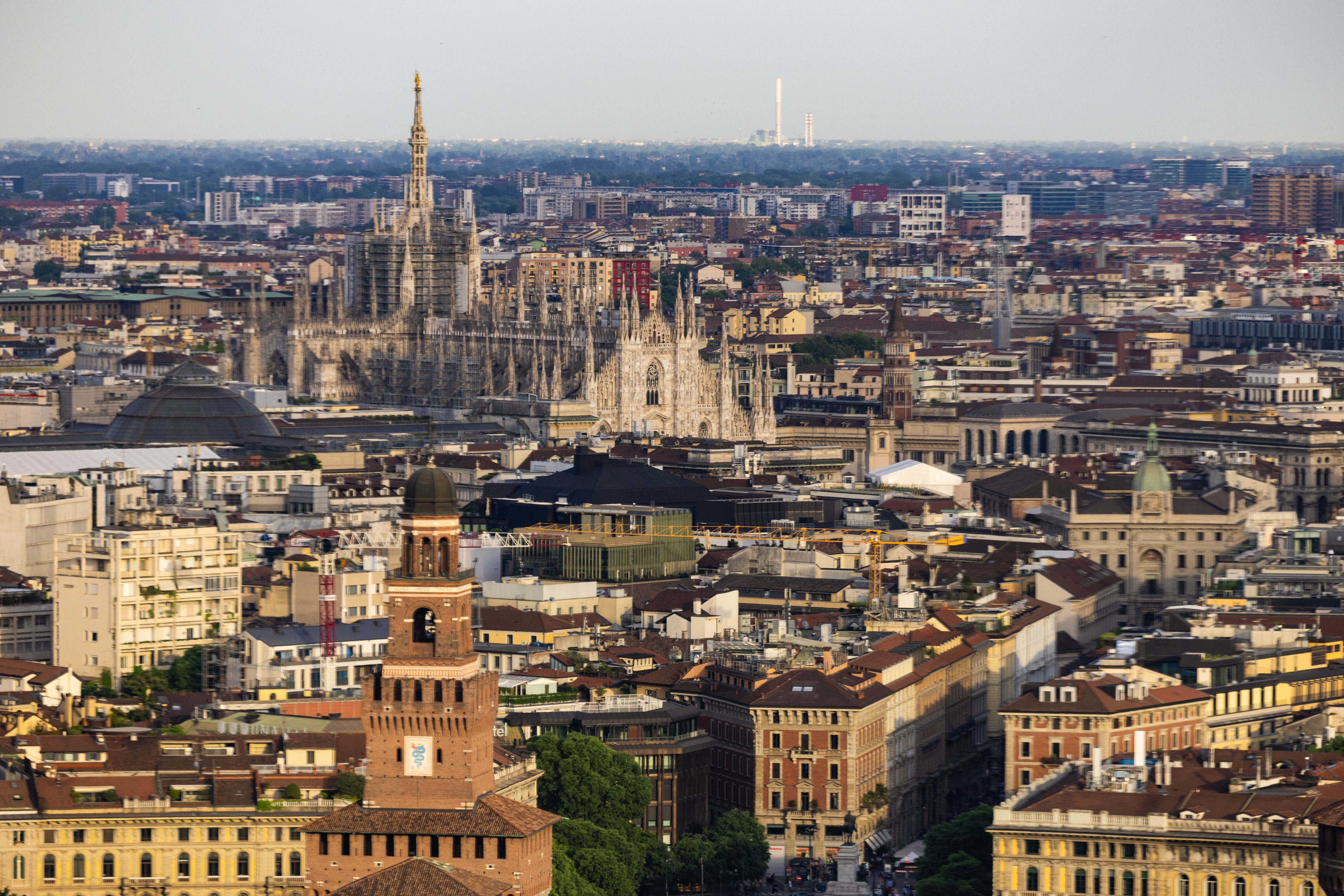 ↑ 这是2025年5月3日在意大利米兰拍摄的城市景观。米兰是意大利经济中心和第二大城市,位于意北部伦巴第大区,是世界著名的时尚之都。