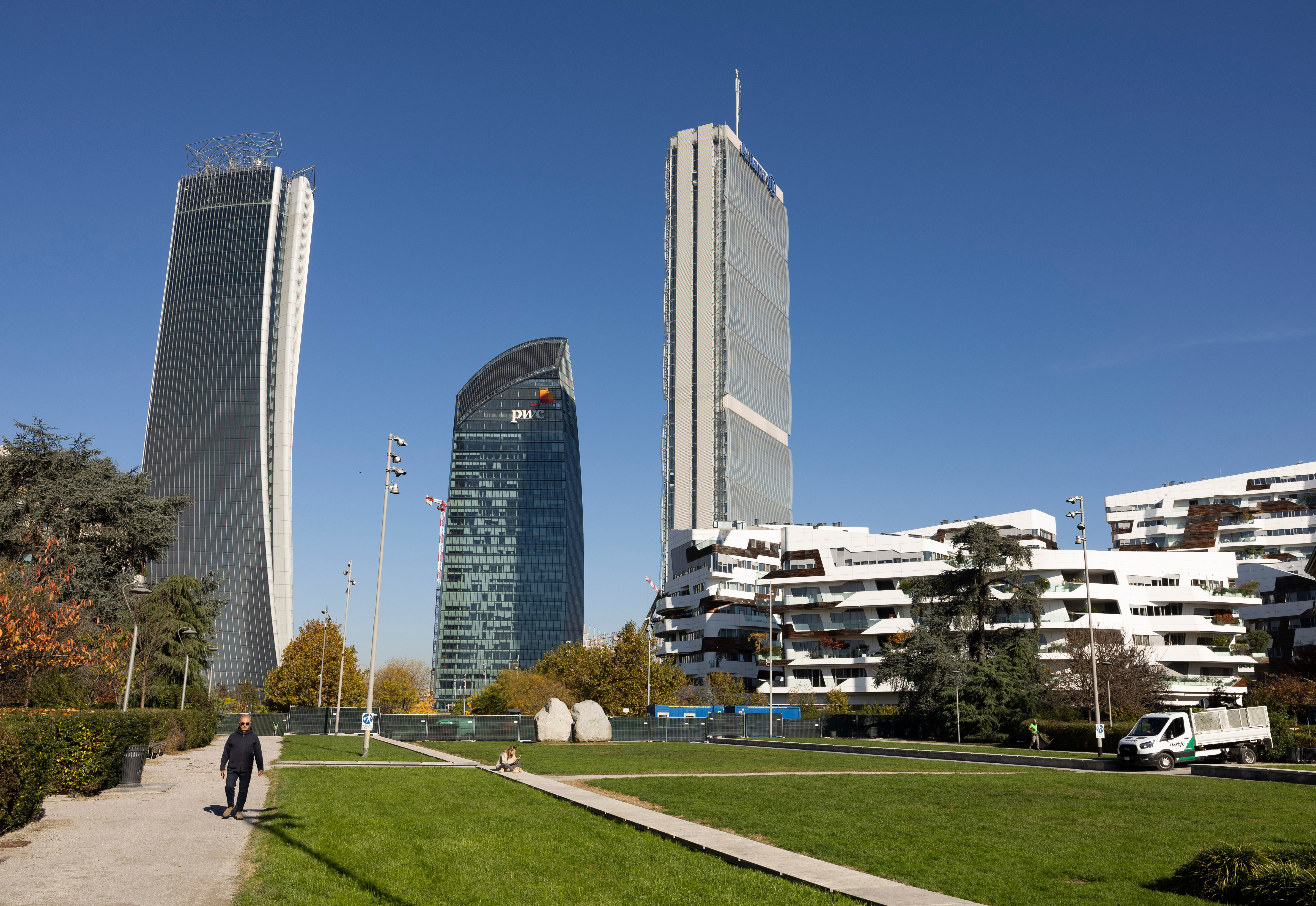 ↑ 这是2025年11月5日在意大利米兰拍摄的城市生活区。