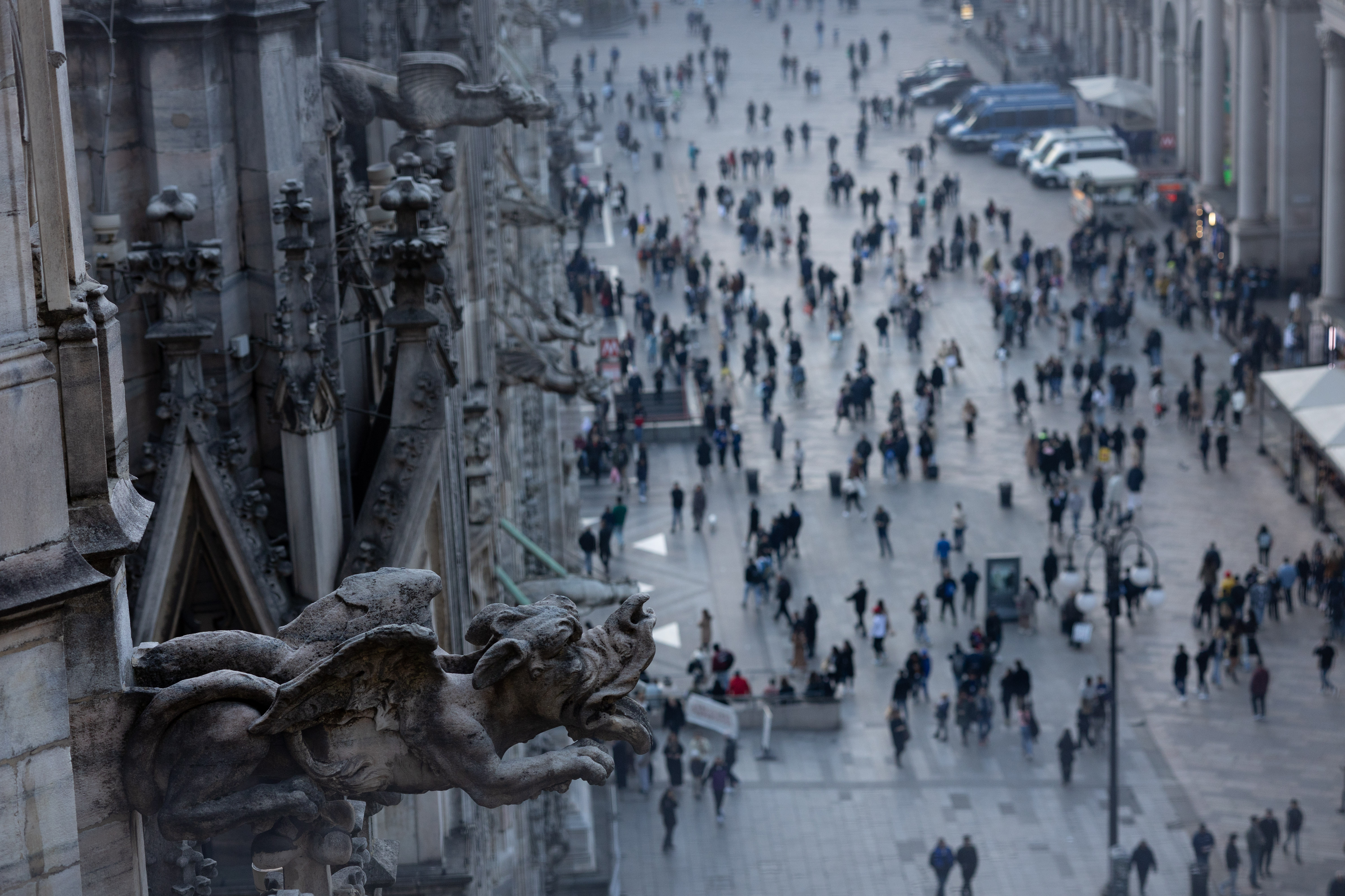 ↑ 2024年在意大利米兰,人们在米兰大教堂前游览。