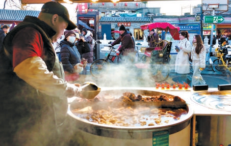 后海街巷游人熙攘,路旁餐馆氤氲着暖人的烟火气。 赵承顺 摄