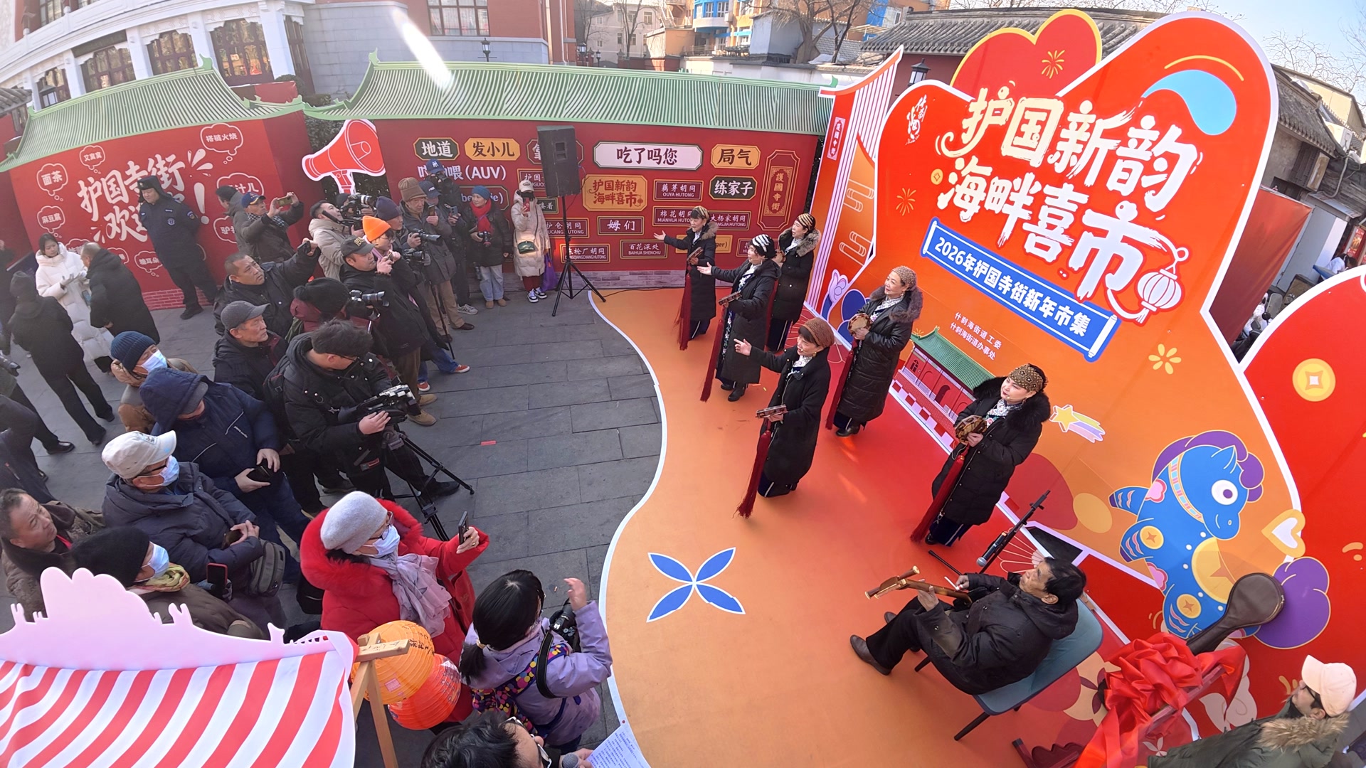 “护国新韵 海畔喜‘市’正式开市!”1月24日上午十点,伴随着一声响亮厚重的锣声和韵味十足的传统叫卖声,护国寺市集正式开市。这个开在什刹海街道居民“家门口”的市集,不仅吸引了30余家商户展售200余种特色产品,更设置了曲艺表演、非遗体验、打卡巡游、海畔“拾光”展览等环节,让参与者可以一站式满足吃、游、购、娱等多种消费需求。