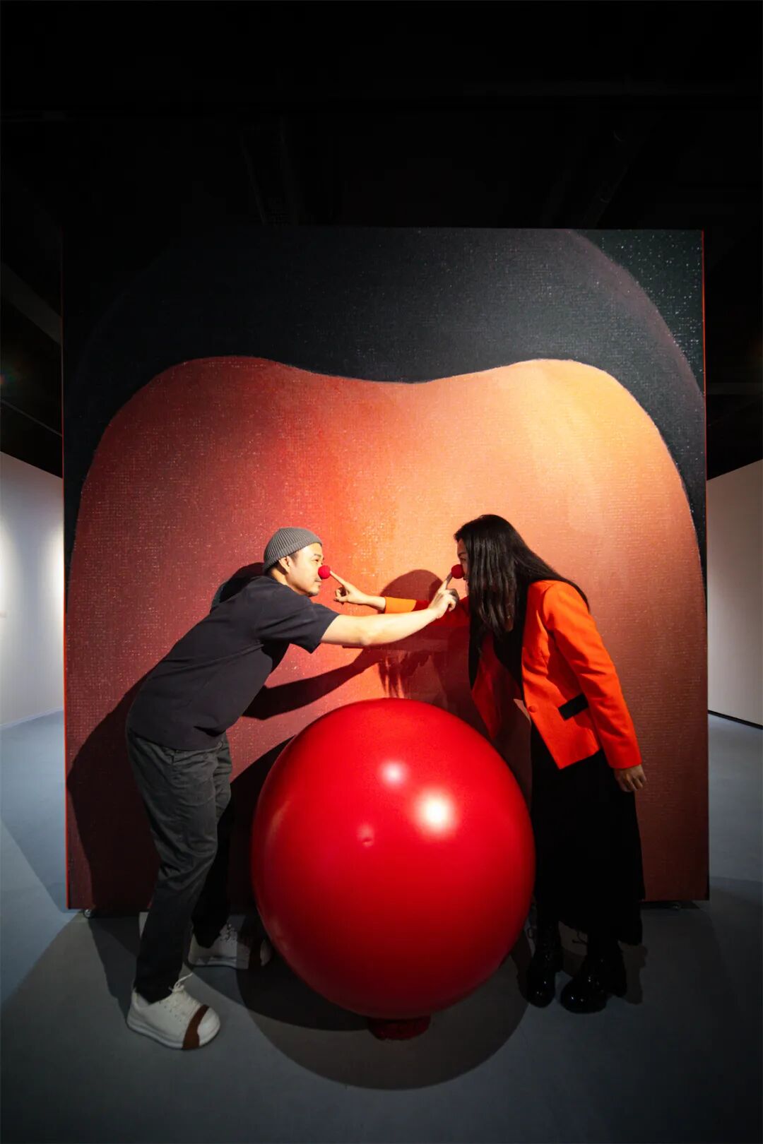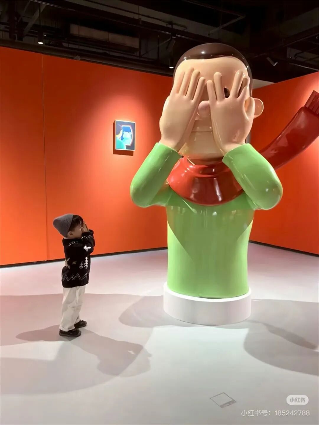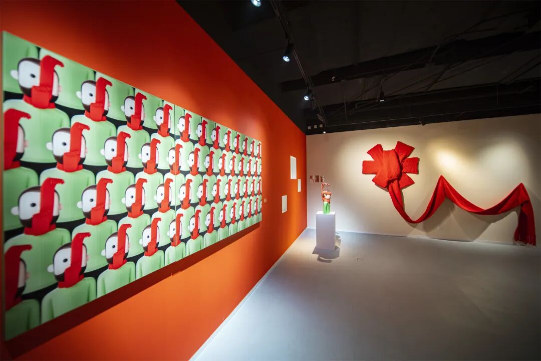 毛线质感的笔触,暖色调的缠绕,仿佛有一条看不见的围巾,轻轻搭进展览的每一个角落。不少观众驻足时,会不自觉地拢一拢衣领——艺术带来的暖,原来真的可以触达皮肤。