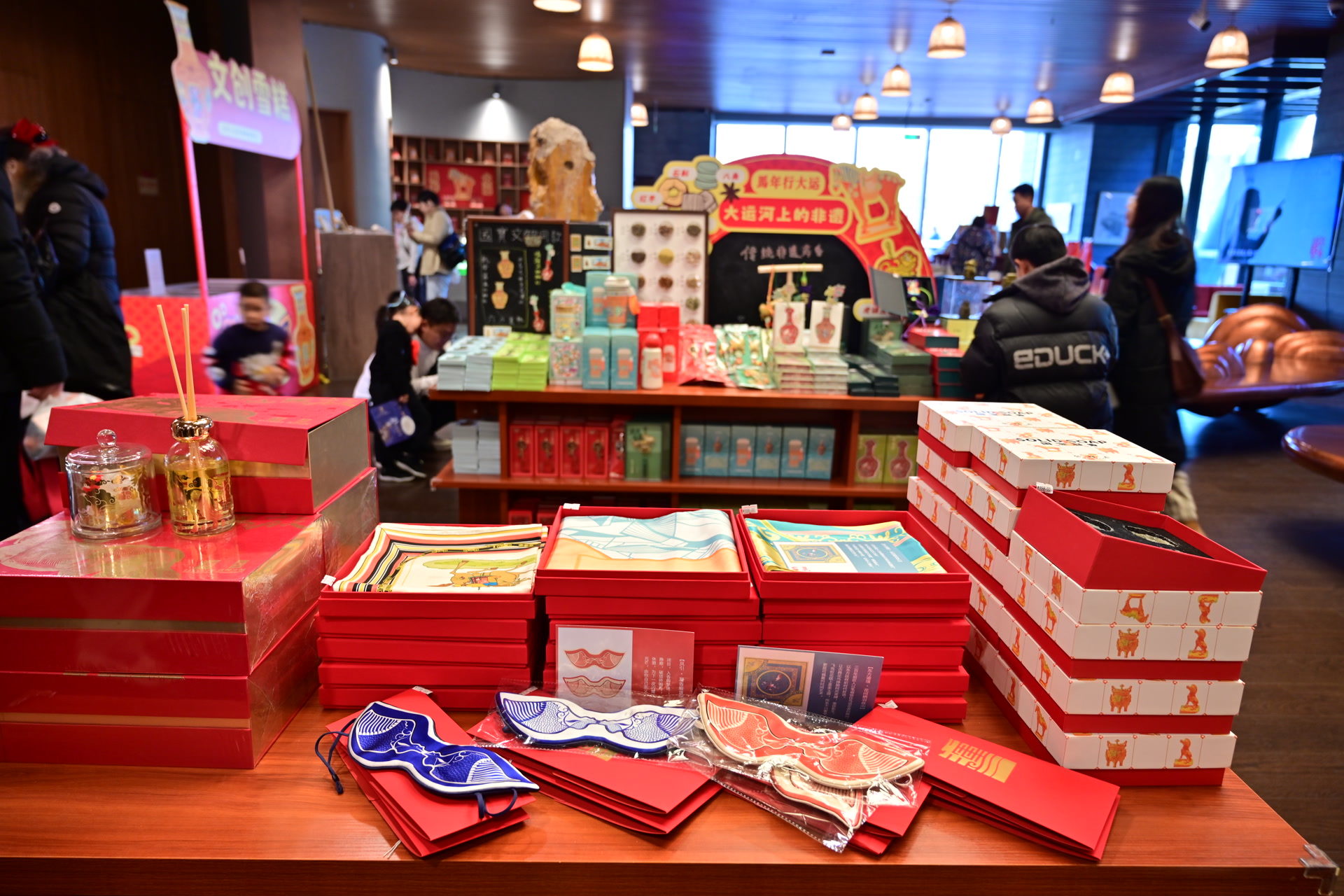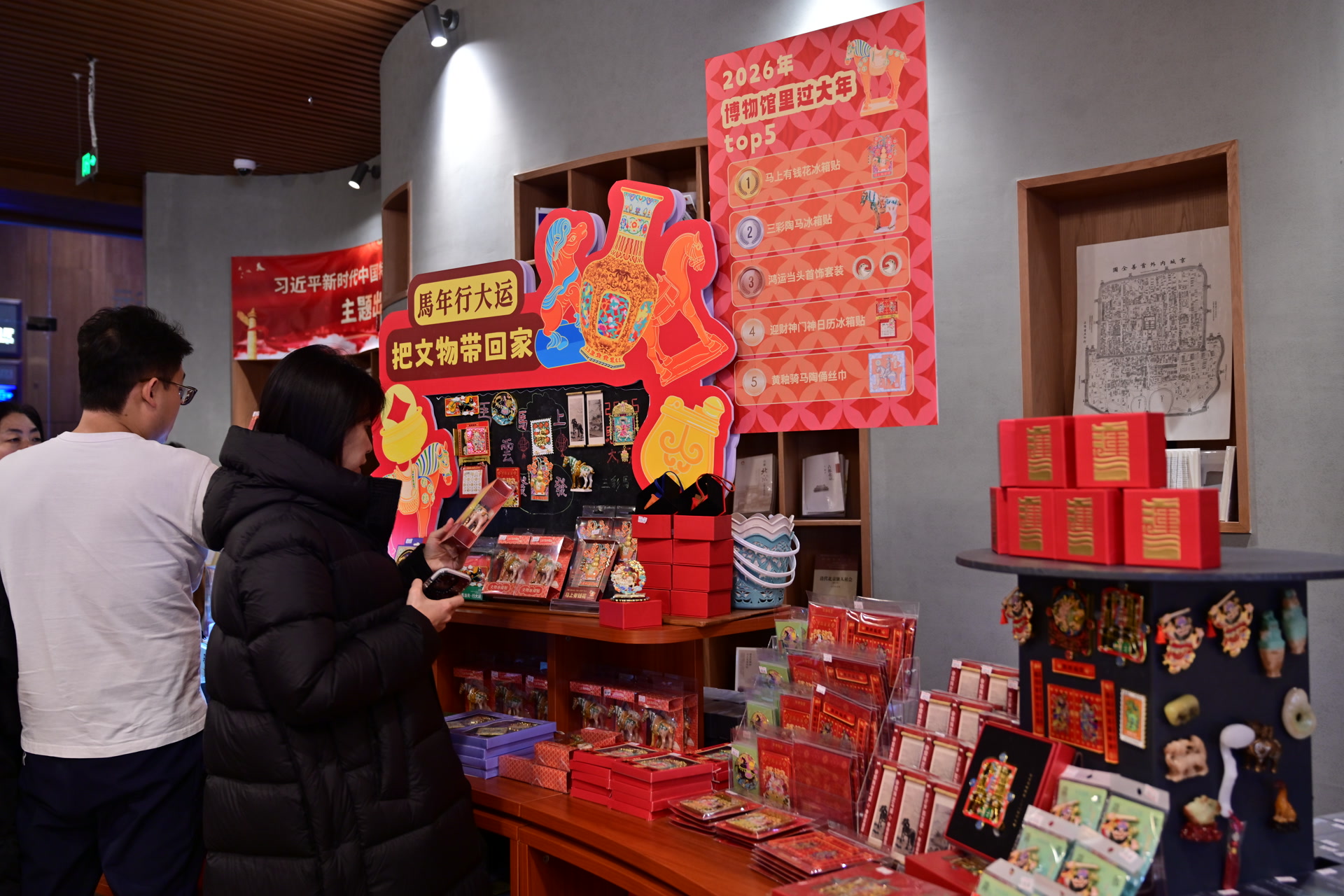让白马跃入“京杭道里图”的丝巾、将“黄釉骑马俑”线条化创作的抱枕、取材“青花龙凤扁壶”纹饰的眼罩……1月24日,北京大运河博物馆(首都博物馆东馆)给2026年家居、生肖、数字三个系列马年文创办推荐会。