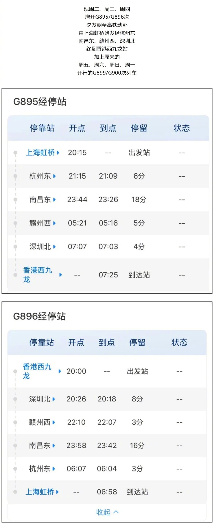 @上铁集团 介绍,沪港跨境高铁动卧增开啦!调图后每天都有一趟,你的选择更多啦!