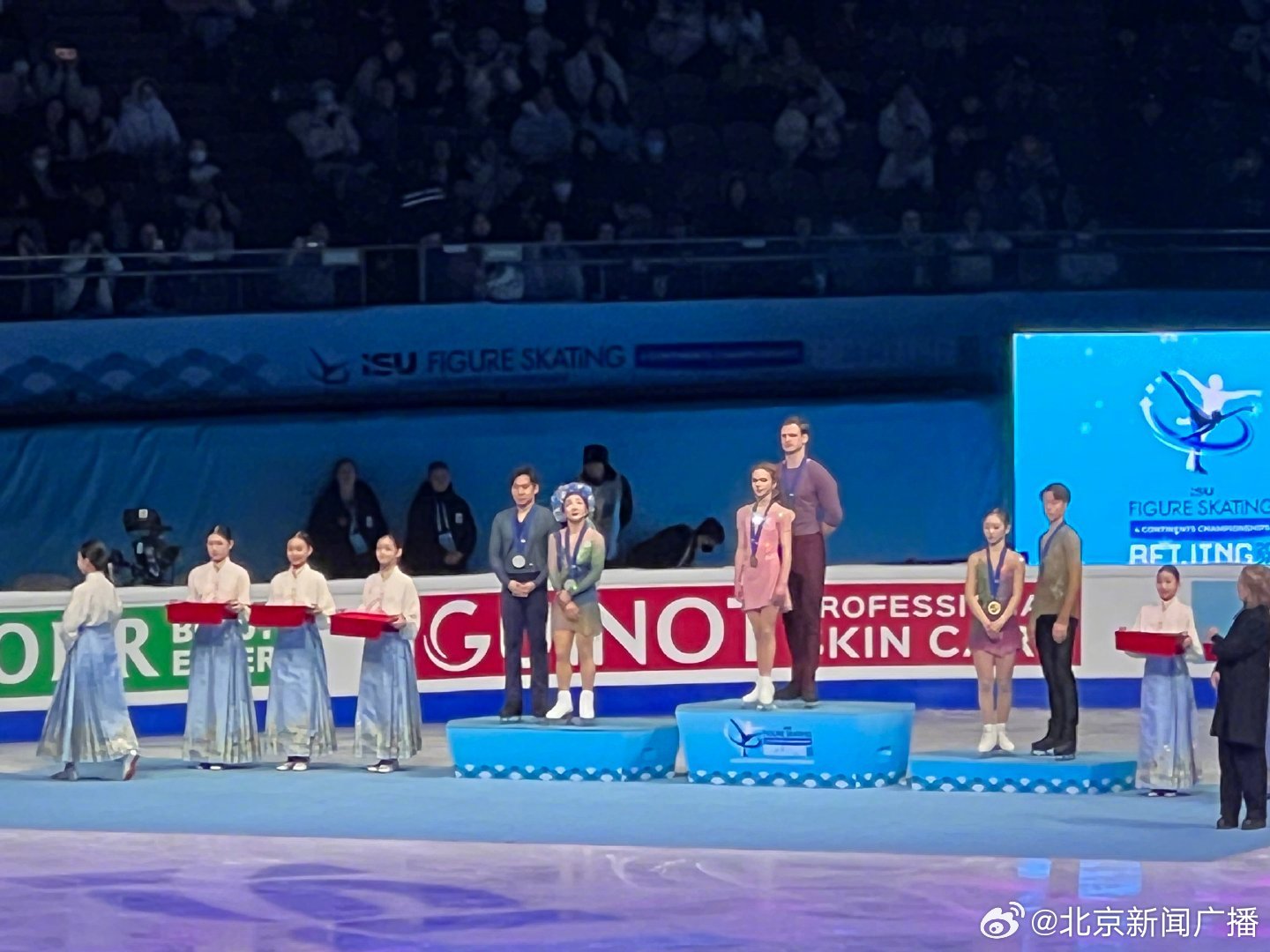 北京时间1月24日晚,2026国际滑联四大洲花样滑冰锦标赛双人滑项目结束争夺。短节目排名第一的隋文静/韩聪组合在自由滑中出现失误,最终获得124.97分,以总分200.99获得亚军。美国组合夺得冠军,日本组合位列第三。