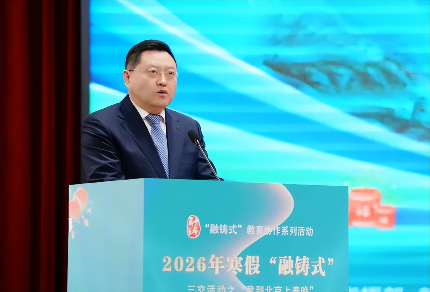 北京市教委二级巡视员葛巨众在讲话中指出,“融铸式”三交活动为五地青少年搭建了互学互鉴的平台,本次活动以北京春晚为载体,推动四地与北京学生1:1精准结对,构建“思政引领、多维立体、文化融合”的实践场景,让学生在“历史文化+红色教育+科技体验+现代生活”特色研学路径中深化认同,在“同台演出、交融共创”的春晚舞台上凝聚团结奋进的精神力量。