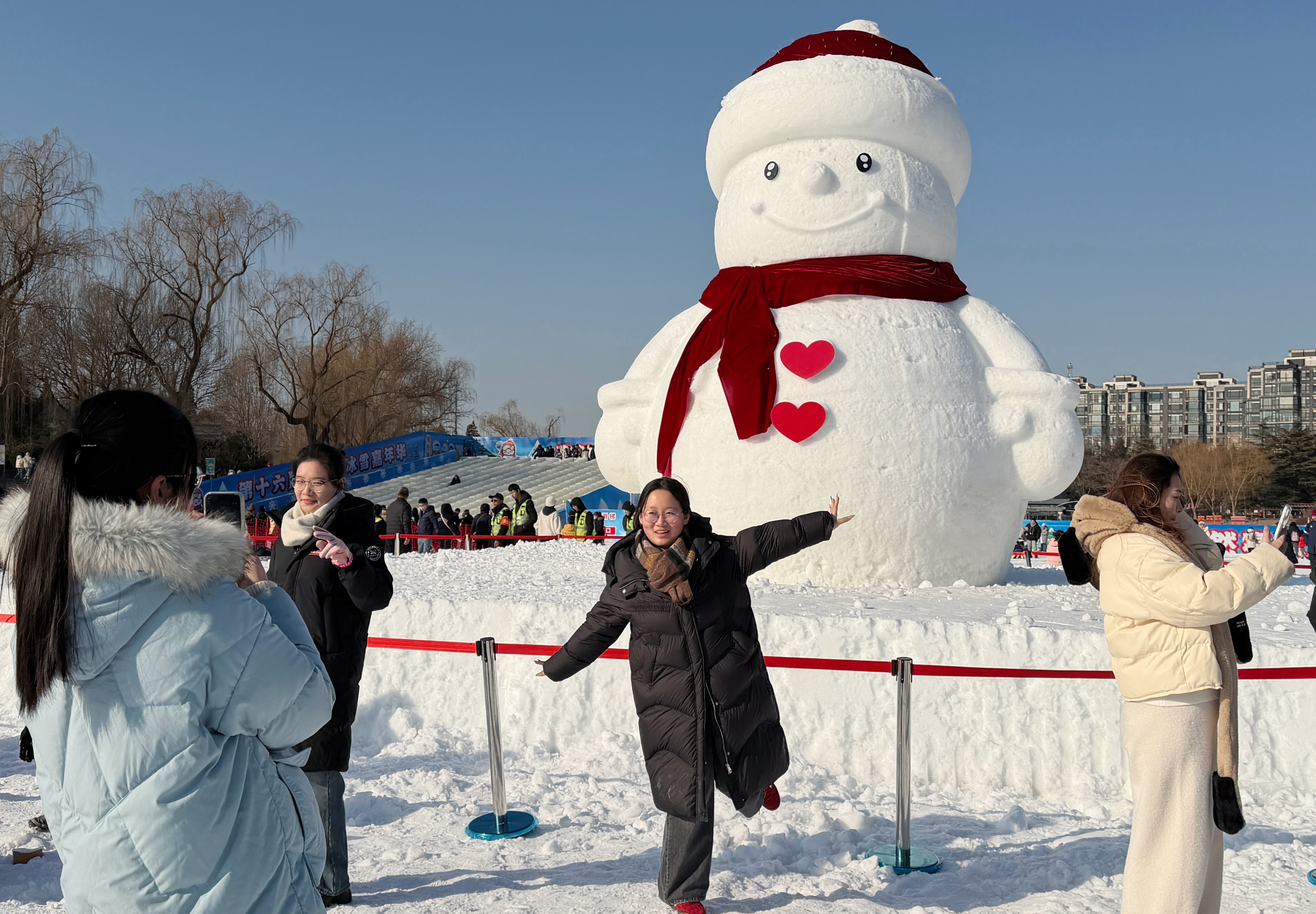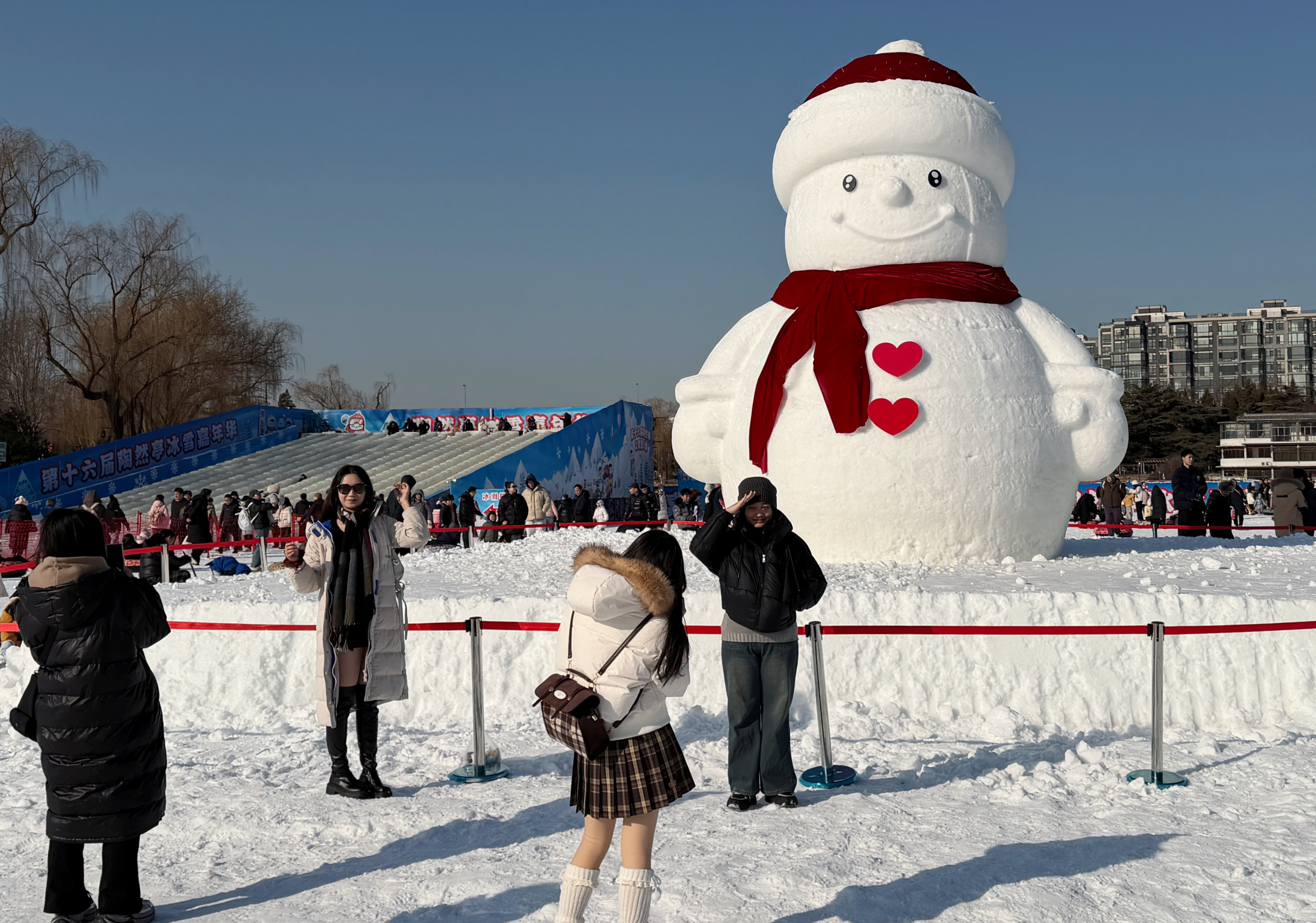 “不用去尔滨,咱家门口就有超萌大雪人!”近日,第十六届陶然亭冰雪嘉年华堆起一座高6米、宽4.5米的大雪人,市民游客争相与这个“冬日限定伙伴”合影打卡。