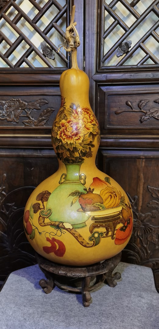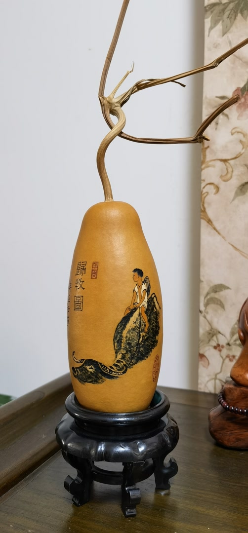 “读画”是高翔的爱好之一,每个葫芦的纹饰他都精心安排,把画读到入心了,才进行择选所使用的局部,每一幅画都有自在的魅力,高翔将打动他的那部分图像呈现在葫芦上。