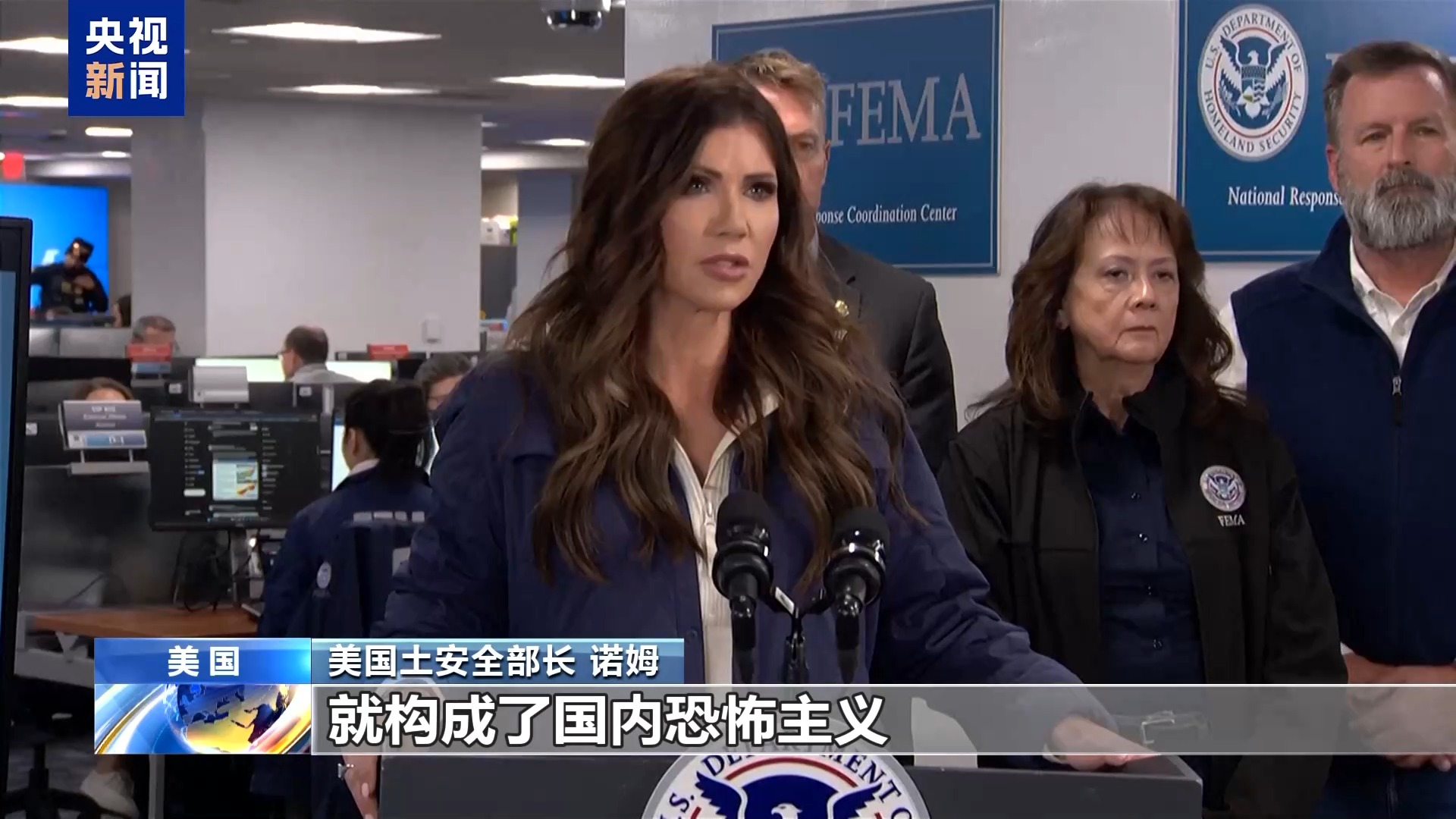 美国国土安全部长 诺姆:出于意识形态原因以及反抗和持续施暴的目的,对政府人员采取暴力行为时,就构成了国内恐怖主义。这个携带武器和弹药来阻止联邦执法人员行动的个人,实施了国内恐怖主义行为。