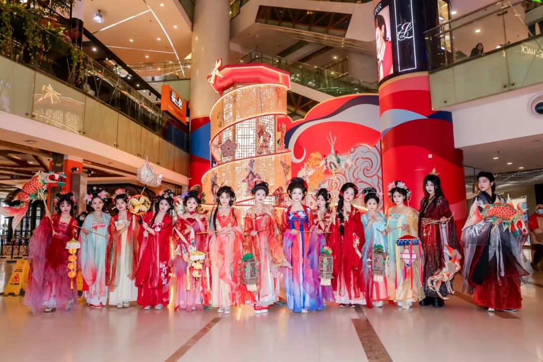 本次跨年展特邀国家级非遗传承人汪天稳、汪海涛父子联袂呈现“汪氏皮影跨年展”,二人以刀代笔,融传统纹样于当代审美之中,使古朴的皮影艺术焕发出崭新的生命力,邀请广大市民共同领略指尖匠心与光影艺术的独特魅力。一座高达8米、满载皮影艺术元素的大型主题展陈坐落于一层东大堂,气势恢宏。一层南北通道上方,十余米长的皮影花灯自高空垂悬而下,光影交织。户外广场则结合全新改造的东立面主入口,将非遗皮影与传统宫灯融合,装点城市夜色。展览将持续至3月8日。