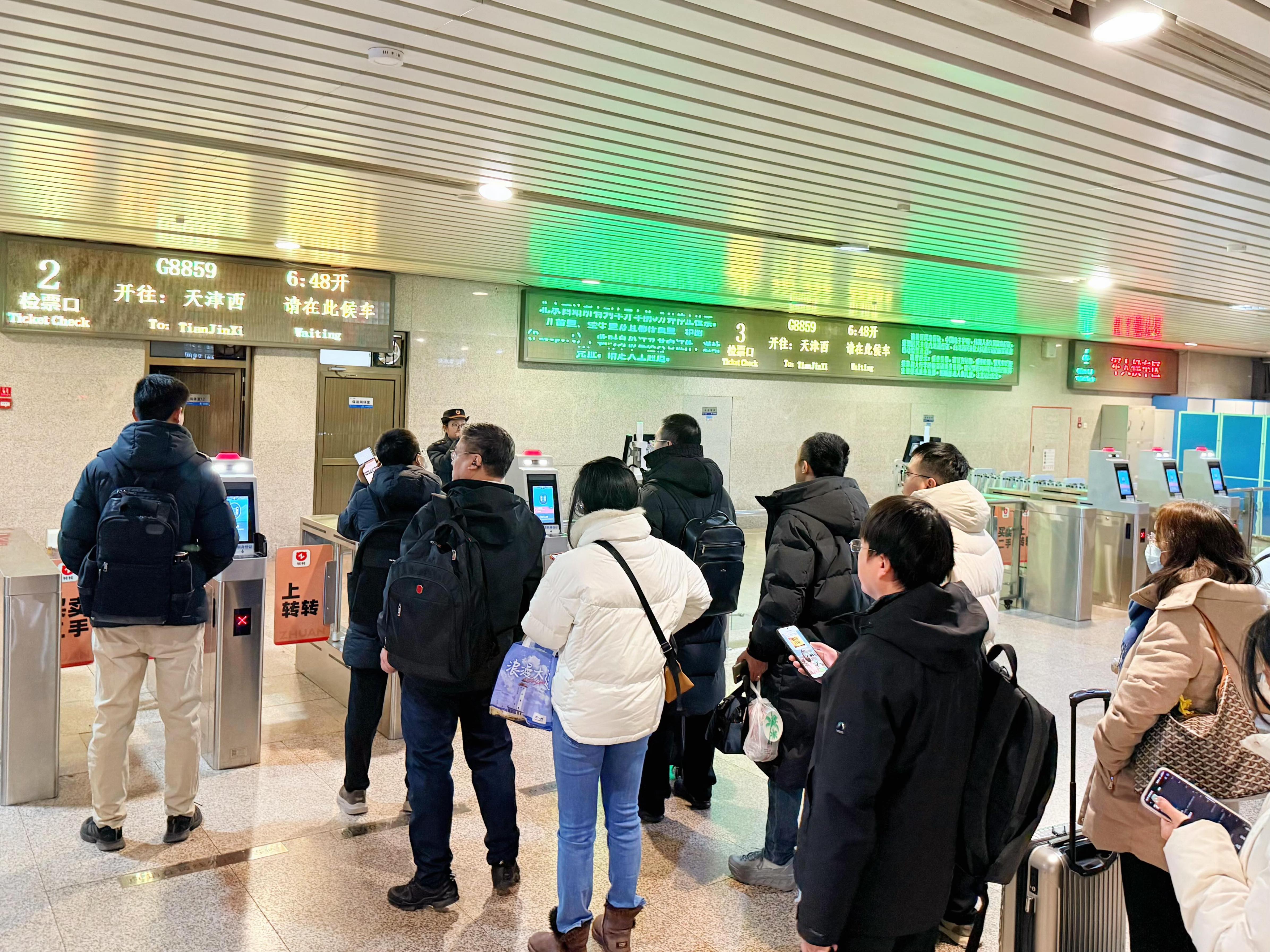 1月26日清晨,北京西站暖意融融,6时30分起,陆续有乘客拎着电脑包来到检票口,他们当中许多人要搭乘当天首次开行的G8859/60次环京津冀高铁列车。6时48分,列车准点发车,驶出站台。
