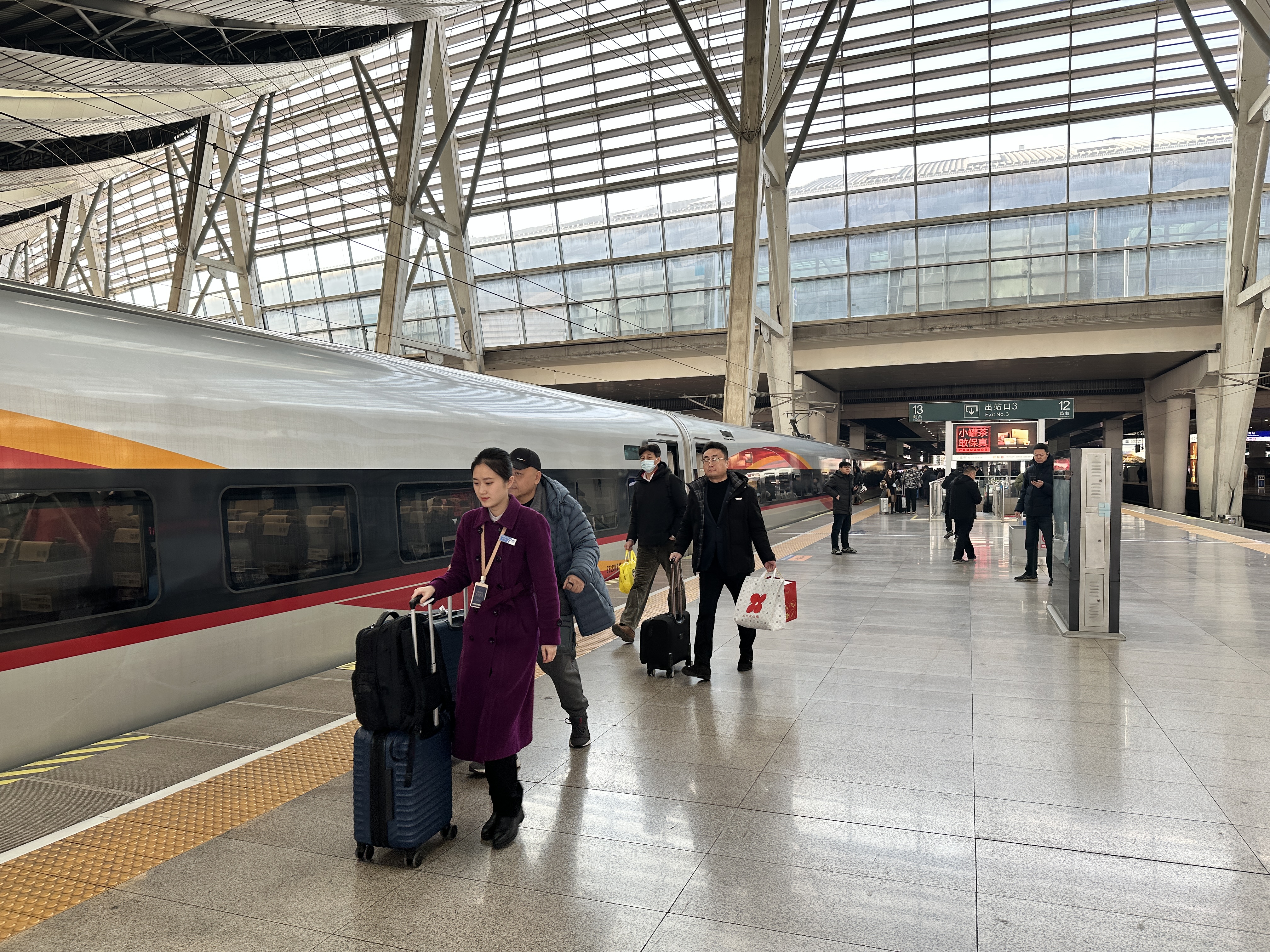 “出差的话肯定是希望越快越好。现在更方便了,买票可选择的空间更多了。”在13A检票口前,准备乘坐G9次列车的杨女士拎着咖啡,显得十分从容。她表示,自己在上海工作,需要经常来北京出差,如今京沪高铁发车间隔缩短至3分钟,让她的星期一不再紧张。