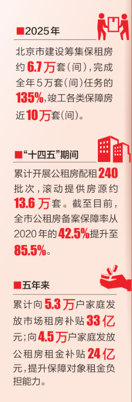 刘畅的换房经历,体现了北京市在保障房工作中付出的努力。北京市2022年起大力发展保障性租赁住房,坚持市场化运作,通过政府政策支持、社会资本投资参与,不断增加“一间房、一张床”小户型房源供应,满足新市民、青年人、城市公共服务人员等群体住房需求,截至目前已超额完成“十四五”40万套(间)建设筹集目标。