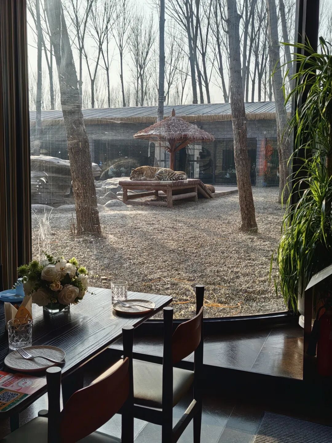 虎餐厅:环绕式落地玻璃设计的虎主题餐厅,一边用餐一边观赏老虎嬉戏、沉浸式体验极强。