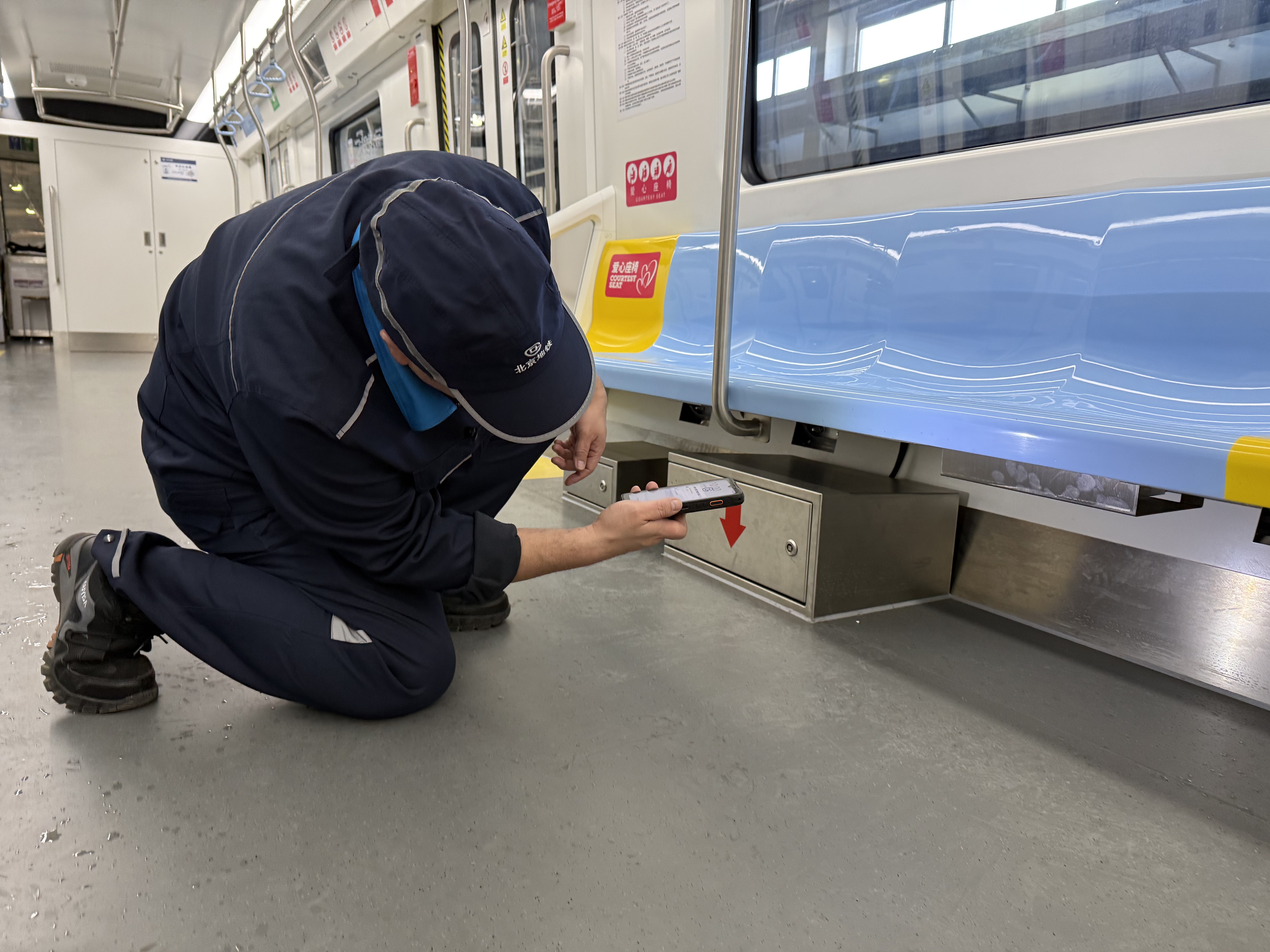 上周四,记者跟随地铁回龙观维修中心副主任杨珂,登上了刚刚回库检修的13号线新车。一进车厢,便觉眼前一亮,不仅环境干净亮堂,暖意更是扑面而来。