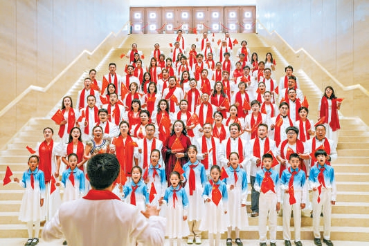 在抗战馆,“民族壮歌·胜利之声”展演参与者进行音乐“快闪”。(资料图)北京日报记者 武亦彬摄