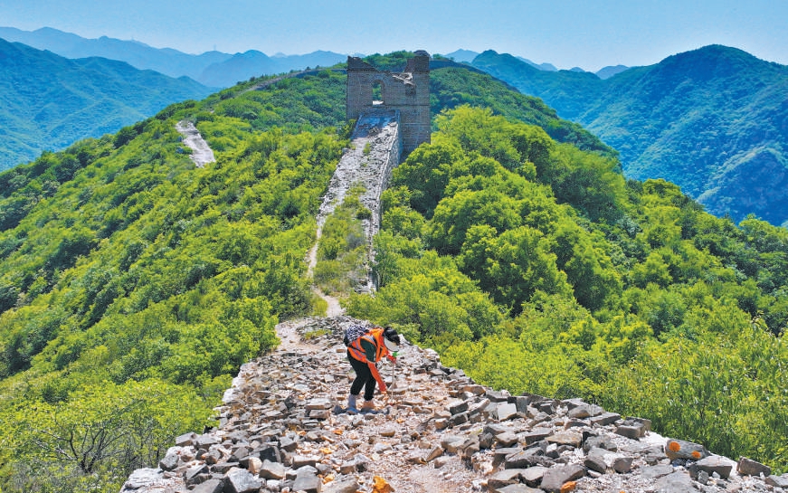 长城保护员在石峡段长城开展日常巡护。北京日报记者 潘之望摄