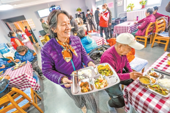 在朝阳区劲松街道养老服务中心的社区餐厅,营养健康、价格实惠的餐品,吸引不少老人用餐。 北京日报记者 武亦彬摄