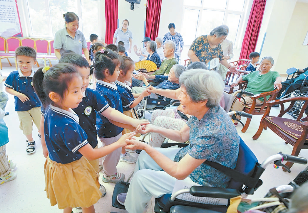 2025年7月23日,在大兴区亦庄养老服务中心,小朋友和老人们一起活动娱乐。亦庄养老服务中心试点依托“亦服务”平台运营,聚合资源,实现周边驿站和区域养老服务中心拥有同质同标的服务内容。 北京日报记者 安旭东摄