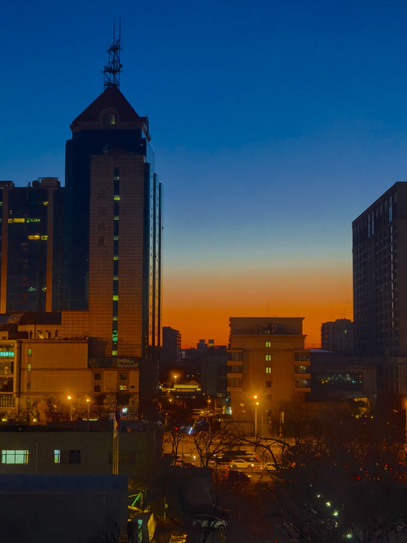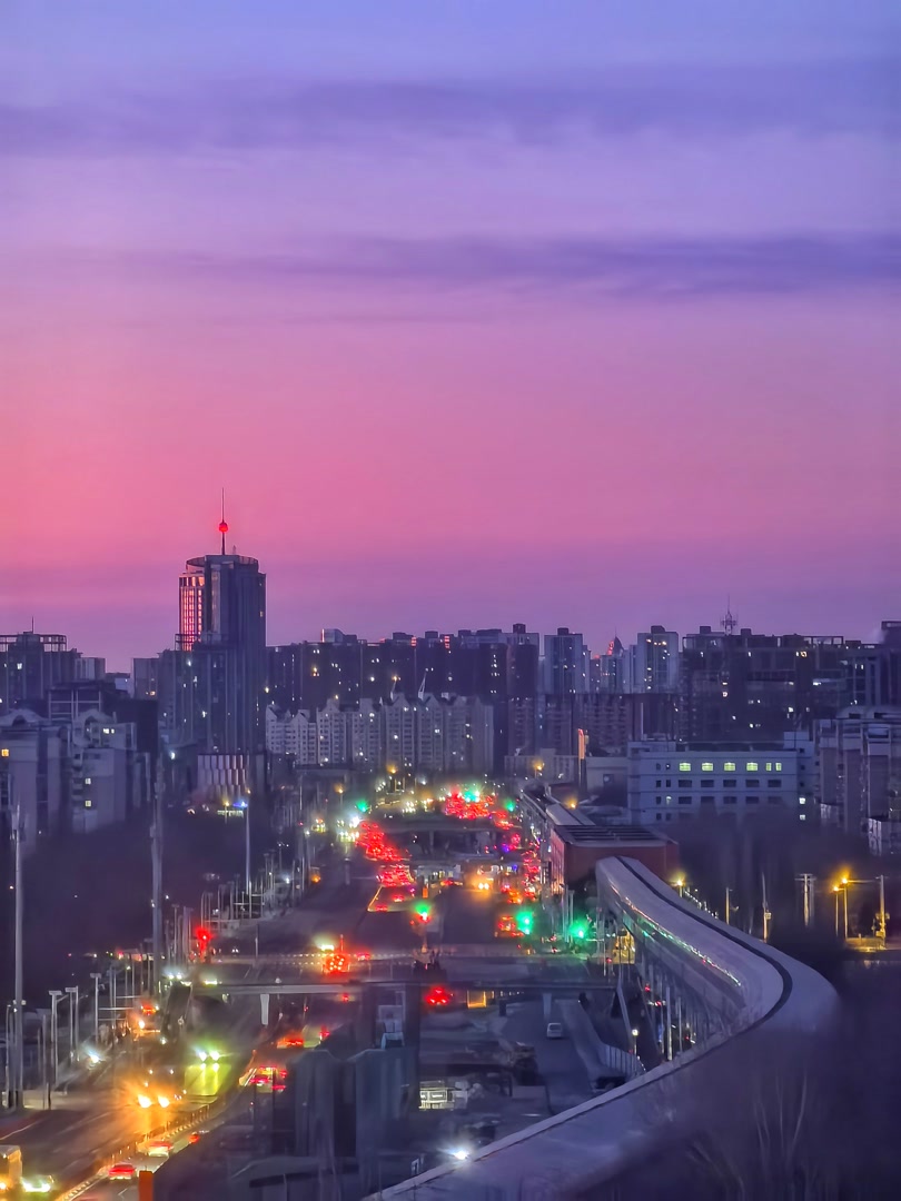 1月27日,北京。黎明破晓,晨光与朝霞温柔浸染天际。