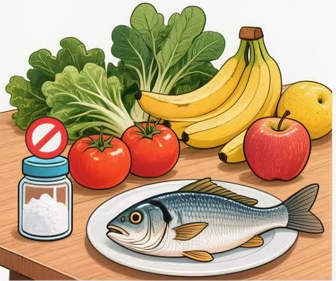 低盐饮食:每日食盐摄入量控制在5克以下,避免腌制食品、加工肉类、酱油等高盐食物。